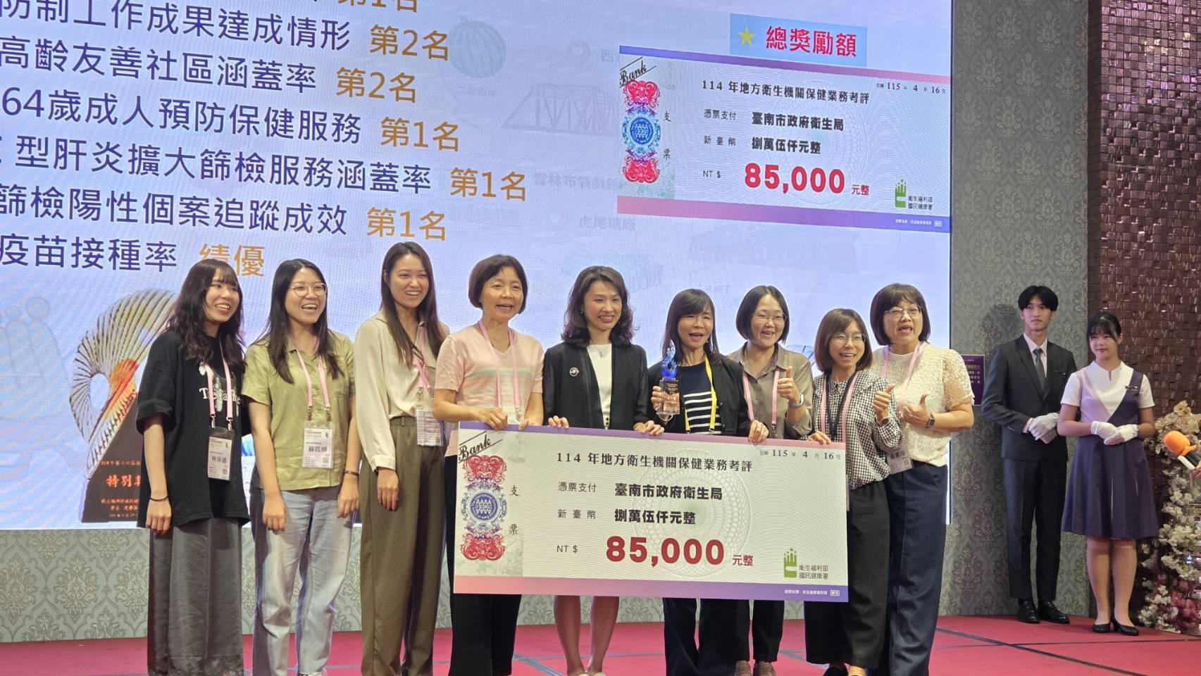 115 年度全國保健會議於雲林縣舉行,臺南市政府衛生局在六都組競賽中表現亮眼,榮獲保健業務總成績優等獎,獎金 30,000 元;各分項業務成績同樣傲視全國,獲獎總金額高達 85,000 元,成果豐碩、備受肯定。