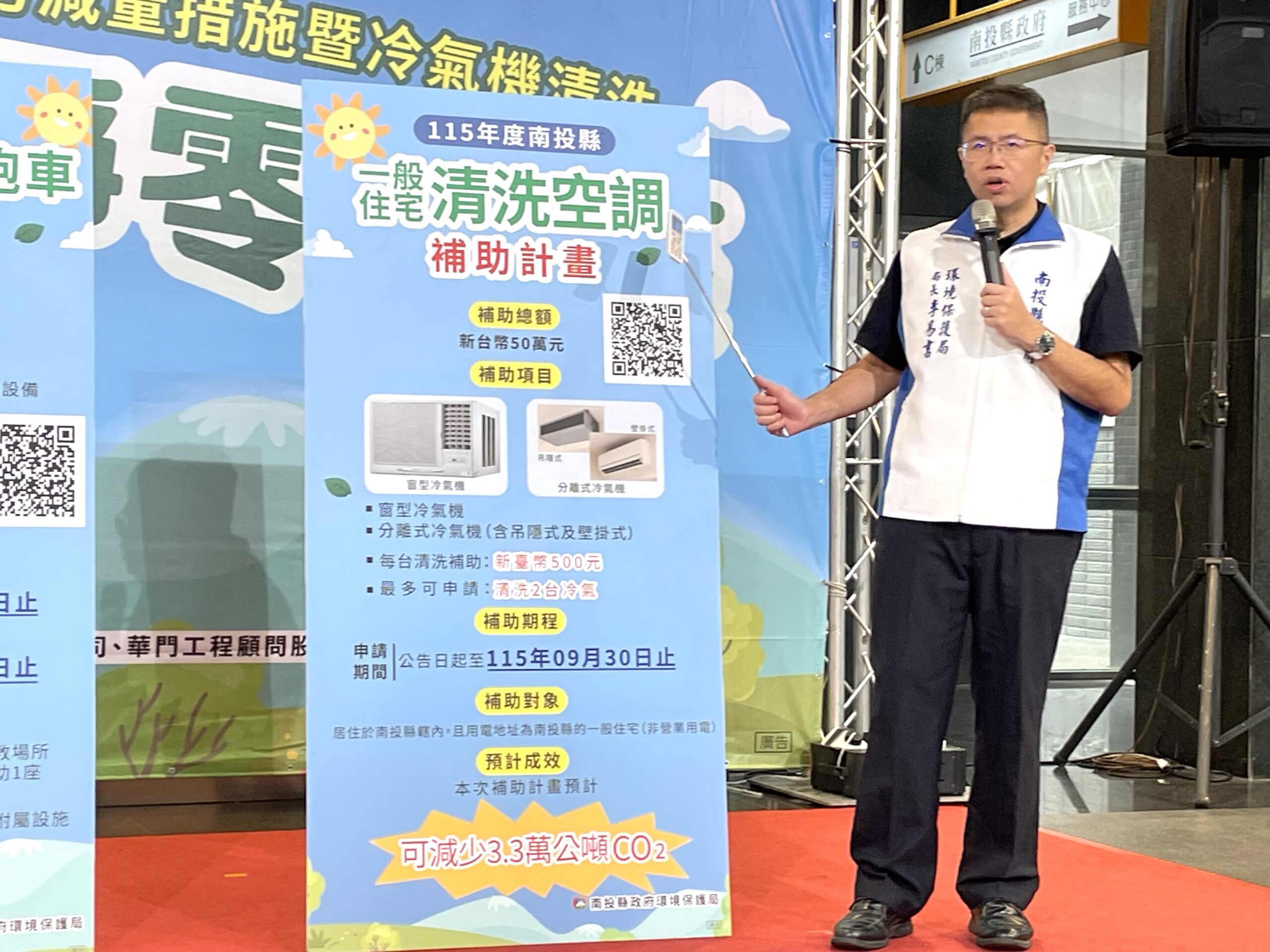 此外,為鼓勵家戶從日常做起,縣府今年首推「一般住宅冷氣清洗補助」,編列50萬元經費。補助對象為設籍南投縣且用電地址在縣內的一般住宅(非營業用電),每台冷氣(以室內機計)補助500元,每一用電地址以2台為限。