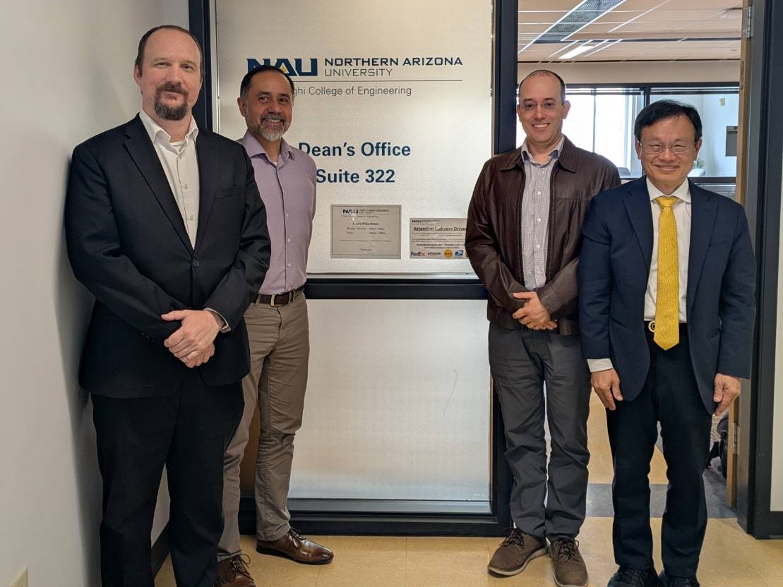 中原大學半導體產業學院院長傅昭銘(右一)拜會美國北亞利桑那大學,開啟兩校半導體人才培育合作計畫。(左起:NAU資訊與網路系統學院院長、NAU國際副校長、NAU教授、中原大學傅昭銘)