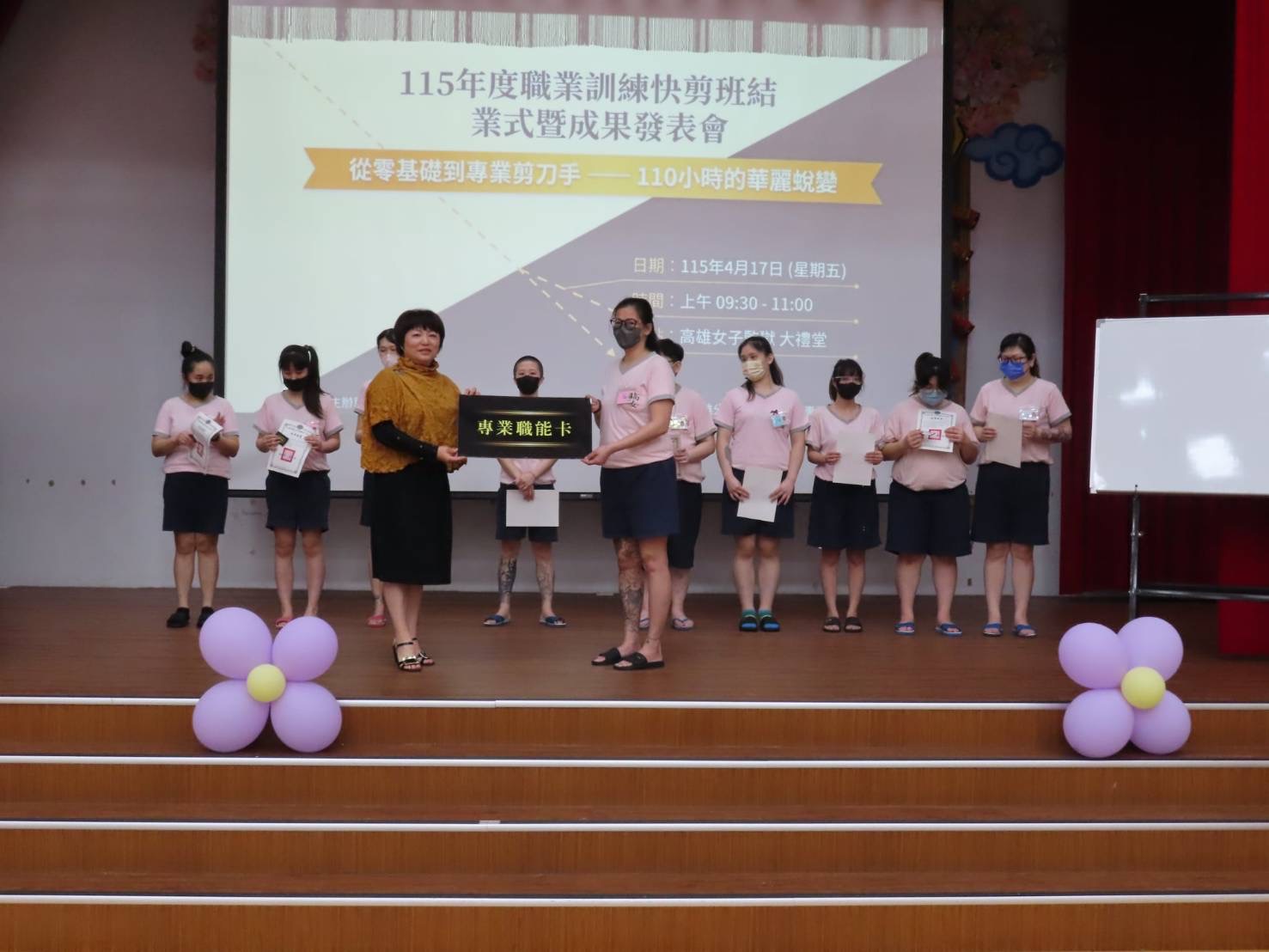 成果發表會中,由饒雅旗典獄長親自頒發結業證書,美樂心美髮總經理沈美利則頒發「專業職能卡」,象徵學員已具備一定程度的專業能力,也代表業界對她們學習成果的正式認可。