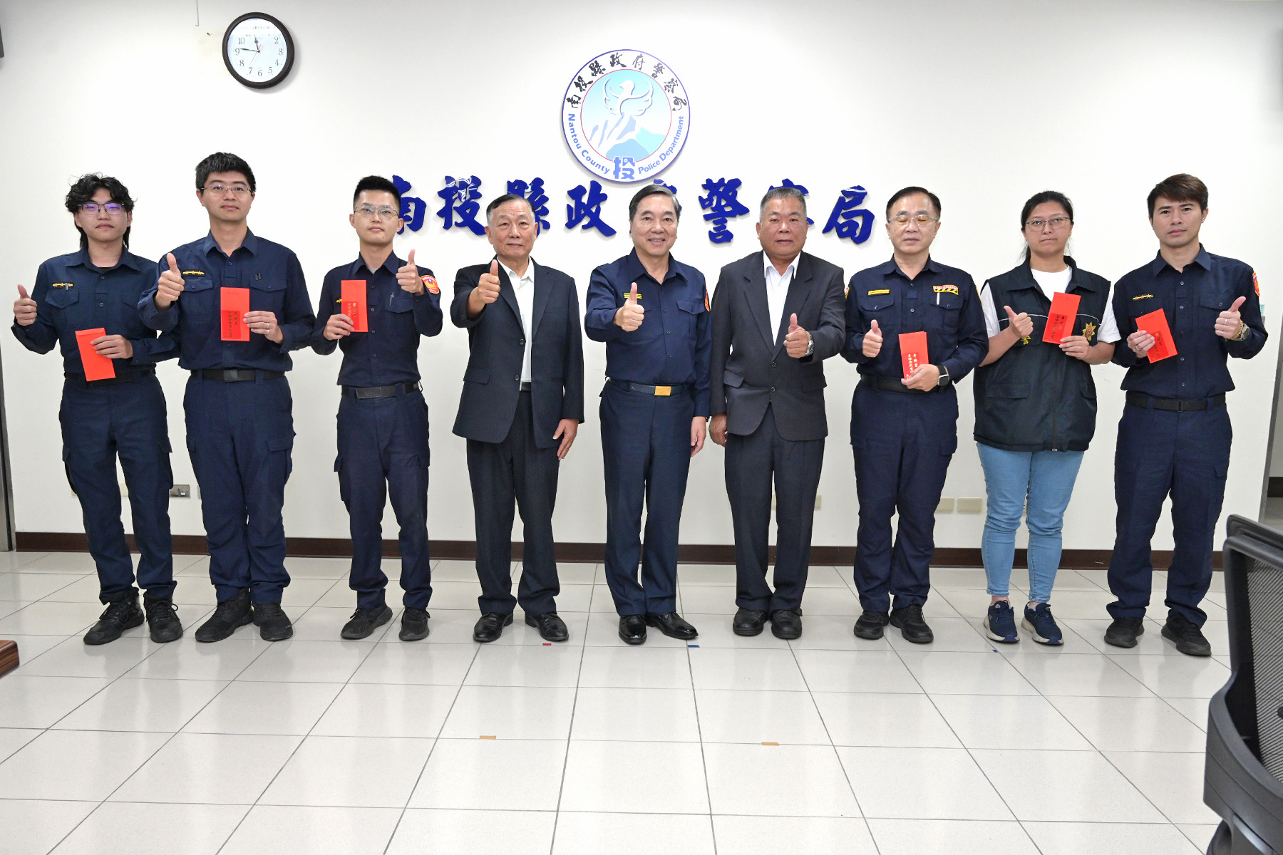 南投縣政府警察局於本(4)月13日召開月報會議,謝宗宏局長特別邀請長期熱心公益「昇樺食品有限公司」吳裕田董事長親臨,頒發「治安維護慰勉金」予第一線表現優異基層同仁,肯定其守護民眾財產安全的卓越貢獻。