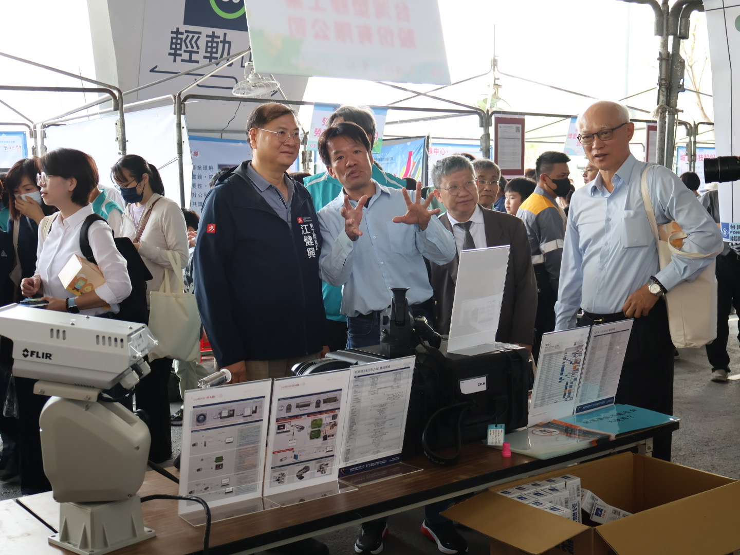 勞工局江健興局長與多位貴賓,並參觀體驗各展示攤位,包括中鼎工程公司施工架高處作業、台塑公司的智慧監控系統、中鋼公司VR多元教育訓練、長榮大學降低熱危害體驗。江健興強調,針對高處作業等高風險工作場所,更需要建構嚴格的安全管理機制與有效的教育訓練方式,可藉由AI智慧與科技,讓職業安全與勞工健康雙軌並進,勞工局將持續結合勞工朋友與各界伙伴,推動預防導向的職場治理模式,共同打造安全、健康且具韌性的高雄職場環境。
