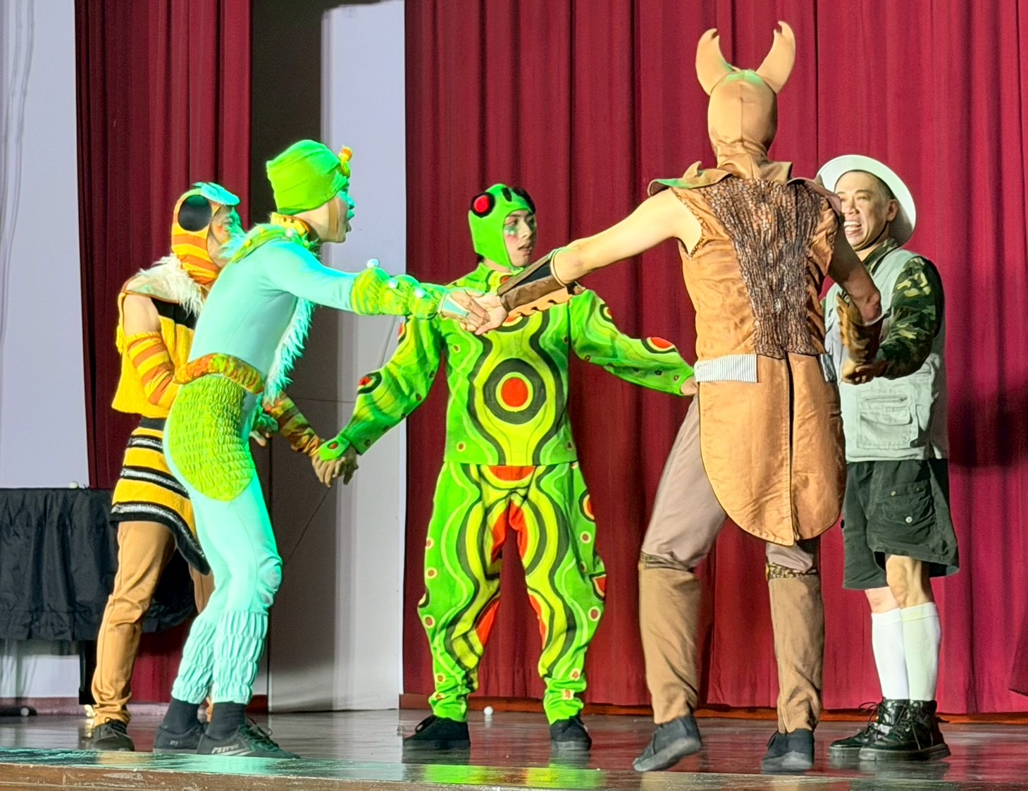 本次劇碼以森林冒險為主題,描述探險家小波帶領觀眾深入森林,尋找傳說中的神奇昆蟲,並立志守護自然環境。劇中呈現森林中各式獨特生物自在生活的樣貌,並透過結合馬戲元素的表演形式,帶來豐富多元的視覺體驗。透過輕鬆有趣的劇情安排,將環境保護與尊重自然的觀念融入其中,讓孩童在歡笑中學習珍惜生態的重要性。演出過程中演員打破舞台界線進行現場互動,小朋友參與踴躍,沉浸式體驗劇情發展,氣氛相當熱絡。