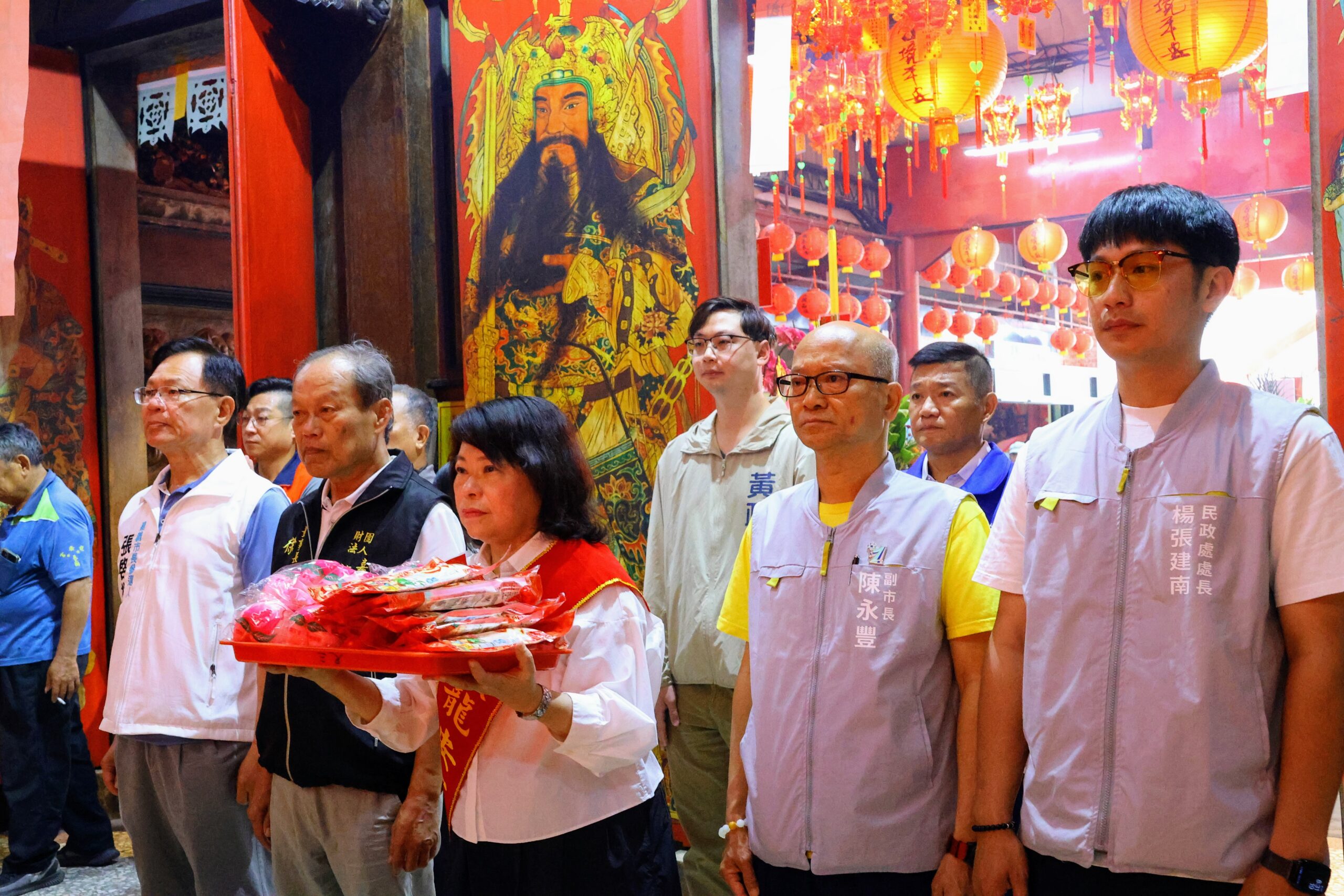 今(19)日是農曆3月3日玄天上帝聖誕,嘉義市長黃敏惠一早參加龍安宮玄天上帝聖誕祝壽大典,向職司消災解厄的玄天上帝上香祝壽祈福,祈佑市民安居樂業、國泰民安,並感謝龍安宮長期熱心公益、造福地方。