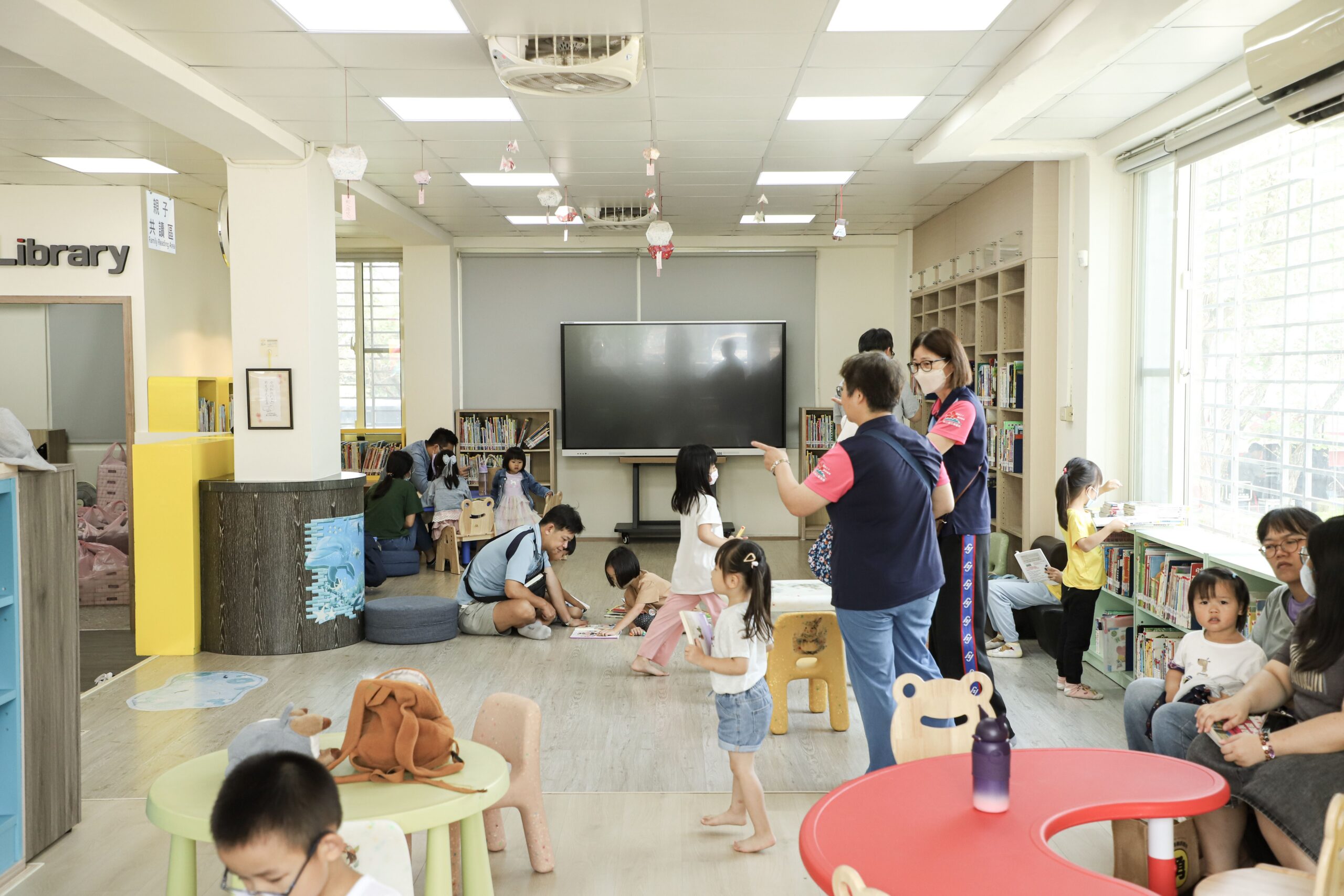圖書館擴大親子閱讀區,建置多功能活動空間,導入智慧觸控教學設備,同時整合主題推薦書區,營造明亮開闊、溫馨友善且富含教育意涵的空間,讓親子族群能在此舒適共讀。