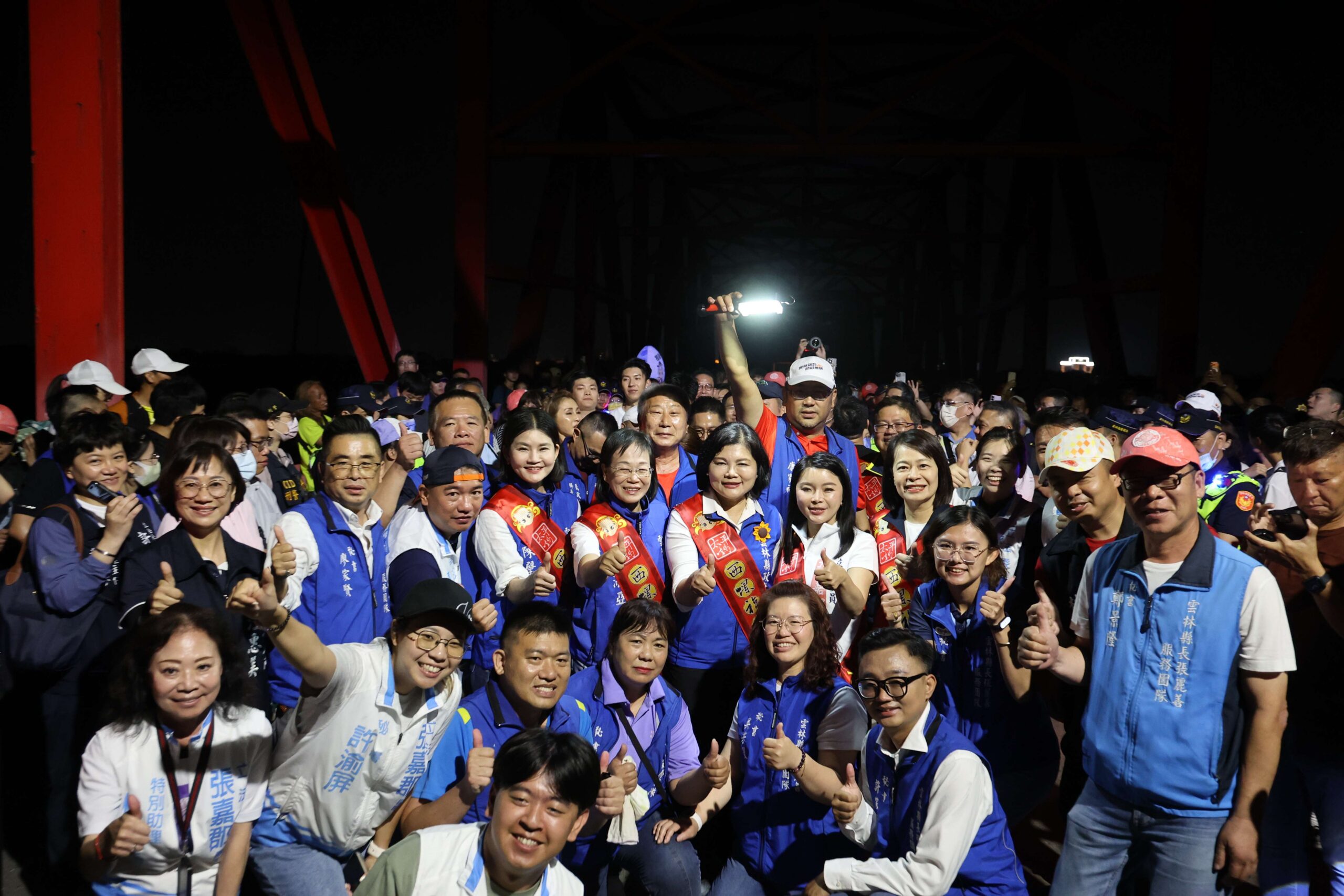 台中大甲鎮瀾宮媽祖鑾轎於19日晚間8時許抵達雲林縣西螺鎮,鑾轎所到之處盡是隨香客及虔誠信徒,縣長張麗善率縣府團隊在西螺大橋第16拱處迎駕,隨後與鎮瀾宮董事長顏清標、立法委員張嘉郡、許宇甄、雲林縣議會黃凱議長等扶轎緩緩進入雲林縣境。