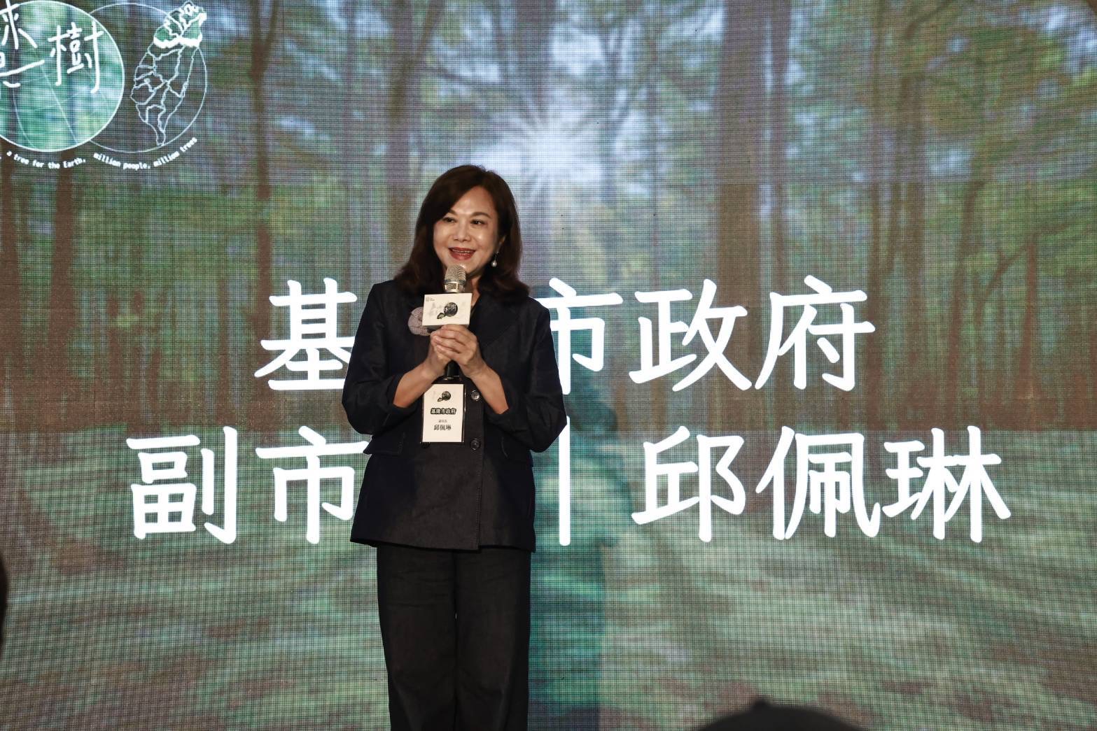 副市長邱佩琳現場致詞(上圖)指出,基隆特別以植樹月活動作為重要推動核心,「發票免費換樹苗」活動已連續5年辦理,在七堵苗圃發放,廣受基隆市民支持,今年3月12日植樹節活動現場於短時間內發放3,509株樹苗,並將募集的發票全數捐贈社福團體,展現市民對環境保護與公益行動的高度參與;透過植樹月的推動,不僅增加城市綠覆率,更重要的是,讓更多市民理解並參與減碳行動,讓「種樹」從活動變成日常,從政策變成全民運動。
