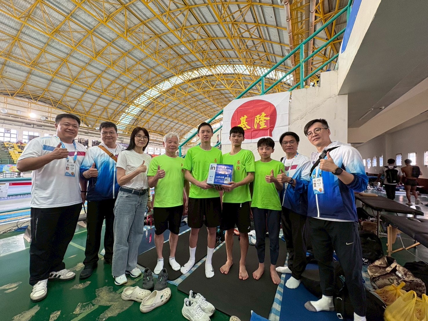 基隆全中運戰績亮眼,教育處長徐嬿立(左2)親赴嘉義送補給打氣