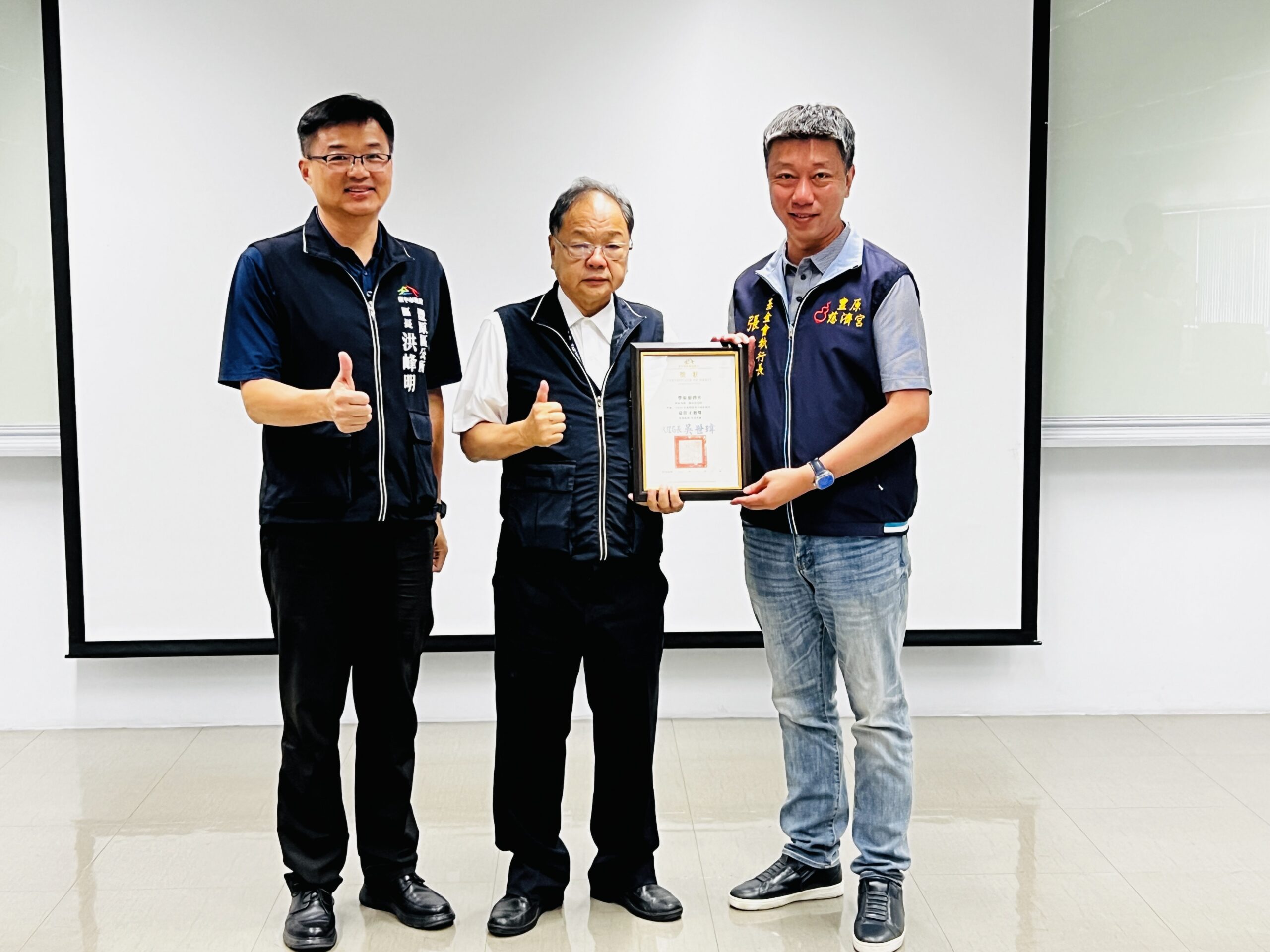 豐原慈濟宮「媽祖童樂園」燈組獲「最佳工藝獎」,執行長張銘凱(右)代表受獎