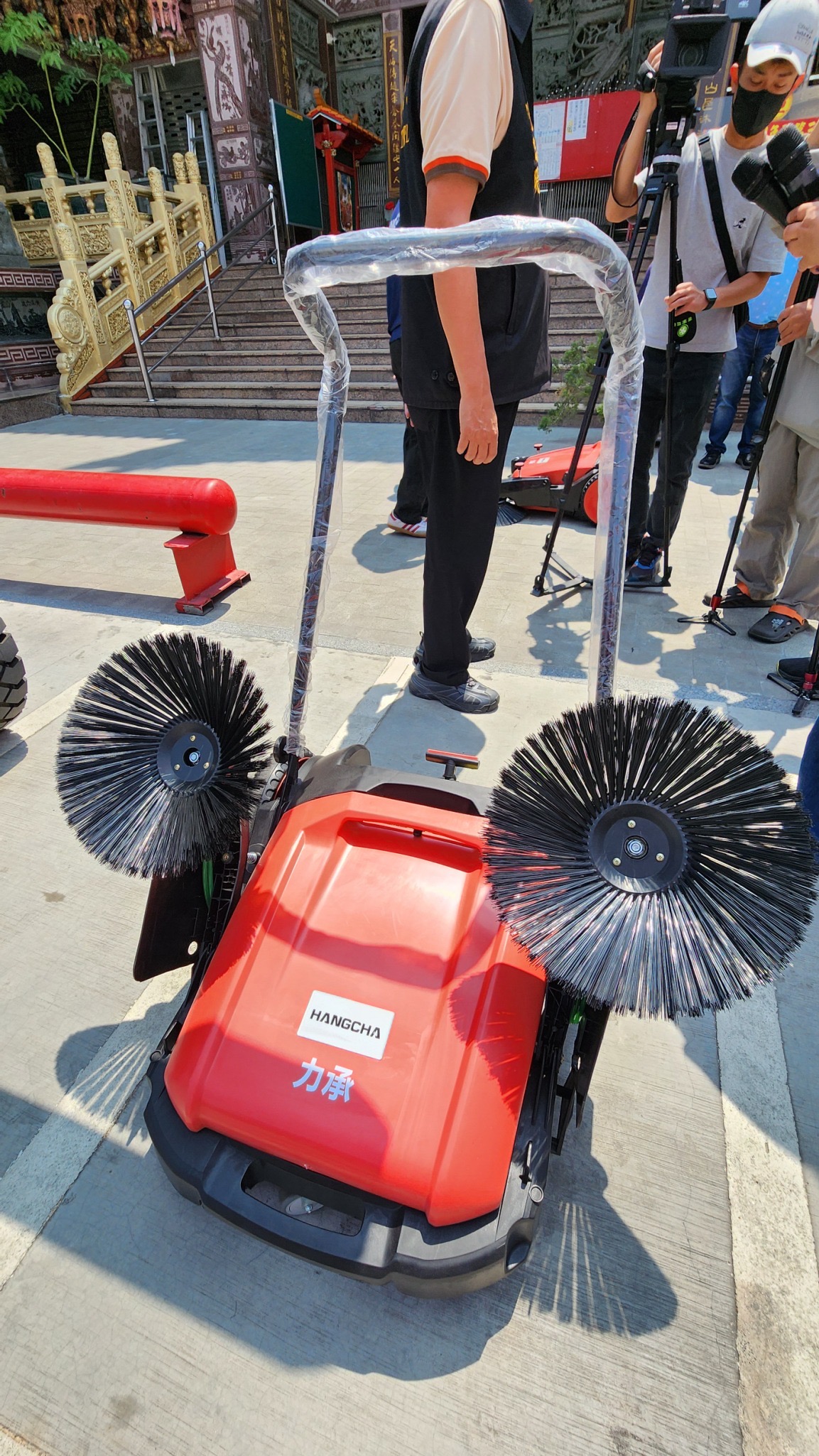 廠商加碼贈送2台手堆掃地機給媽祖廟及公所,街道清掃更方便。