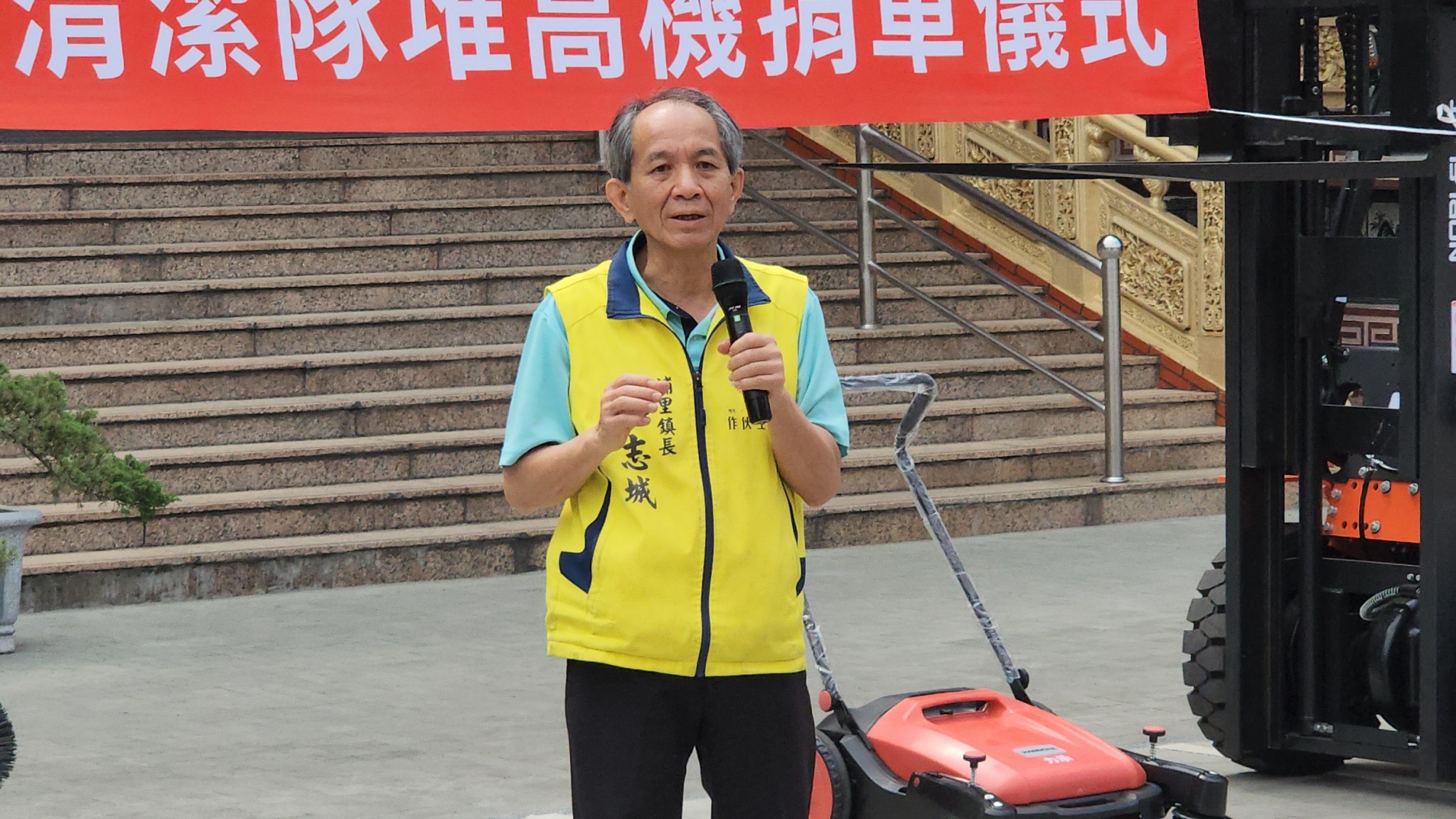 廖志城說,感謝去年4月寶湖宮天地堂地母廟捐贈1台550萬元的大型抓斗式資源回收車,今年再有恒吉宮媽祖廟捐贈堆高機,都能提升大型廢棄物及回收物處理能力,在地2大宗教團體接力挹注,有效改善基層清潔隊設備不足問題,更成為地方善行義舉典範。