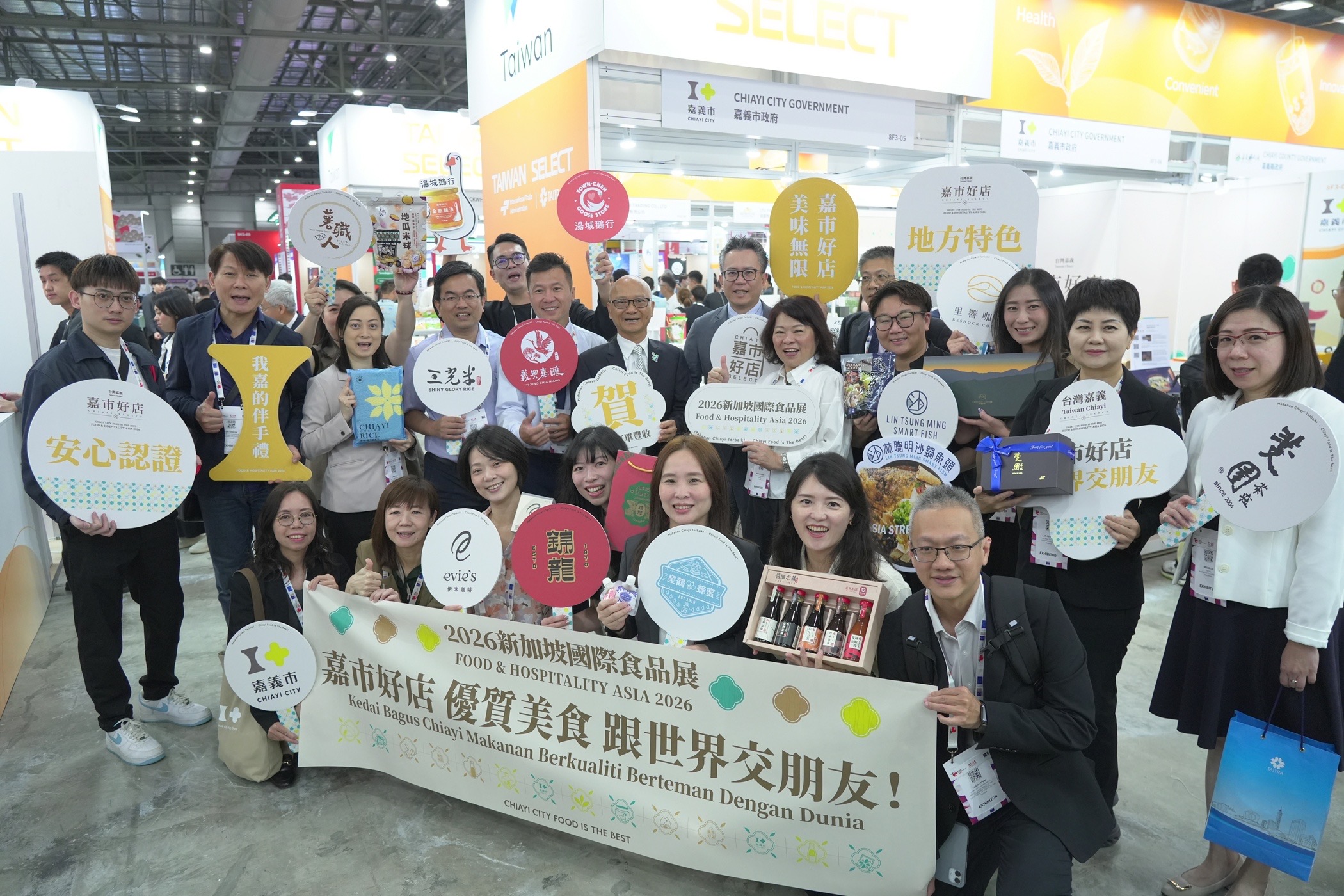匯聚全球業者、亞洲深具指標性的2026新加坡國際食品展(FHA 2026)今(21)日在新加坡博覽中心(Singapore EXPO)盛大開幕,此次展期為期四天,將一路展至4月24日。嘉義市長黃敏惠領軍10家業者組成「產業嘉義隊」首次進軍東南亞市場參與展覽開幕,向全世界展現「嘉市好店」的設計經濟力。黃敏惠市長強調,「嘉市好店」以台語來說,就是「這裡是好店」,盼透過此次參展,讓更多國際買家與消費者透過美食認識台灣、認識嘉義市,看見嘉義市優質品牌的魅力。