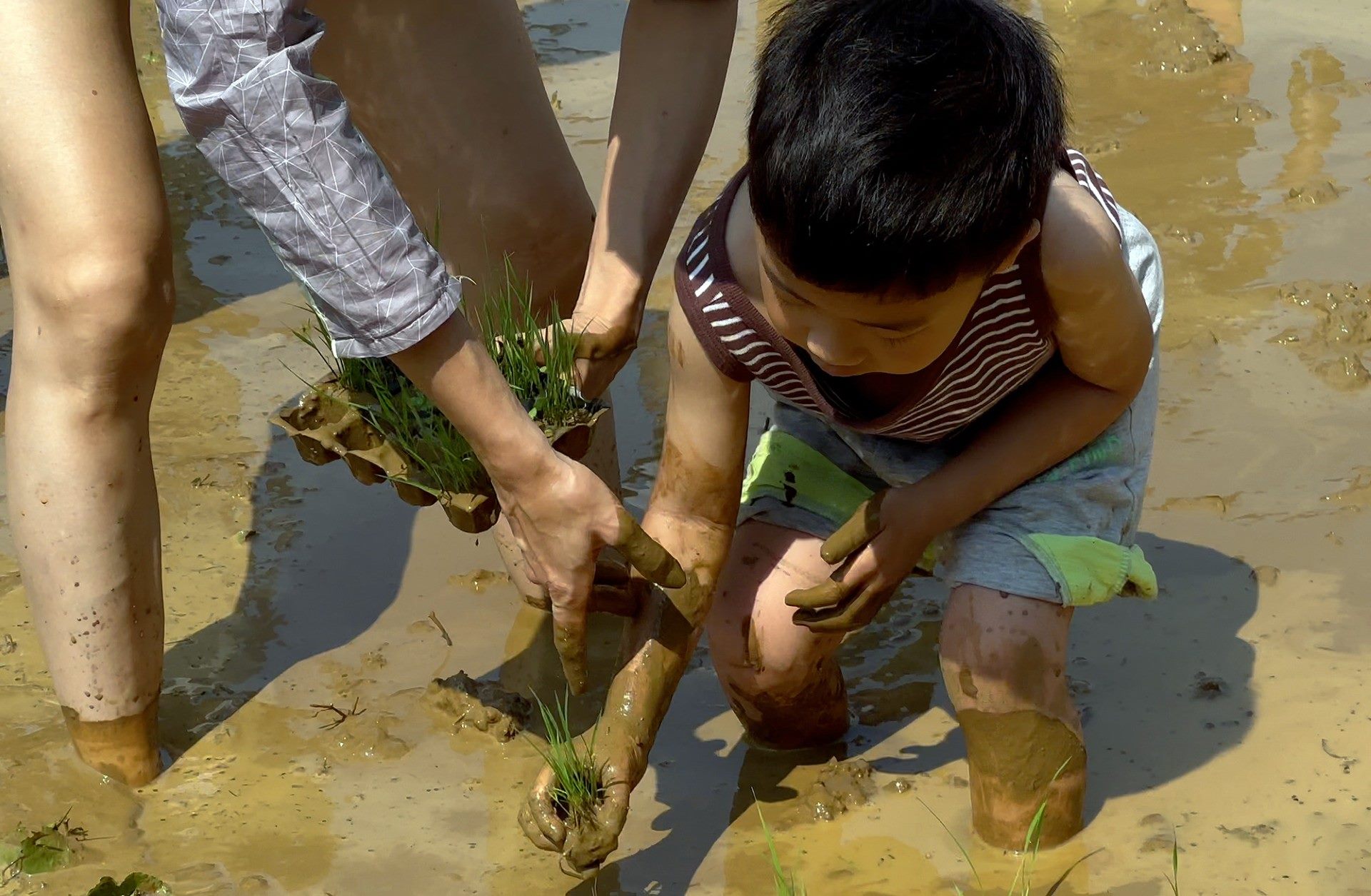 孩子們親手捧著這些象徵希望的綠苗,再次彎腰將其送回大地母親的懷抱,用在地行動對抗外來種入侵,維護梯田生物多樣性。