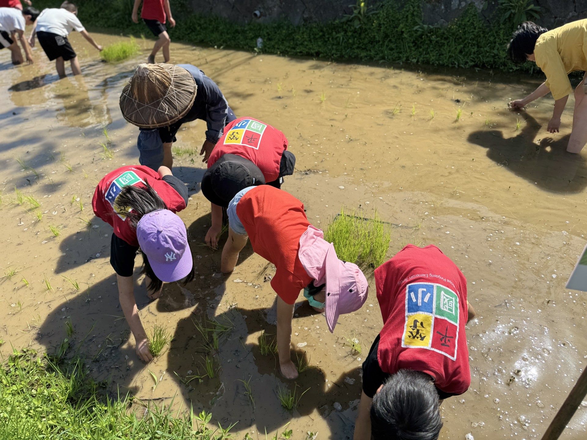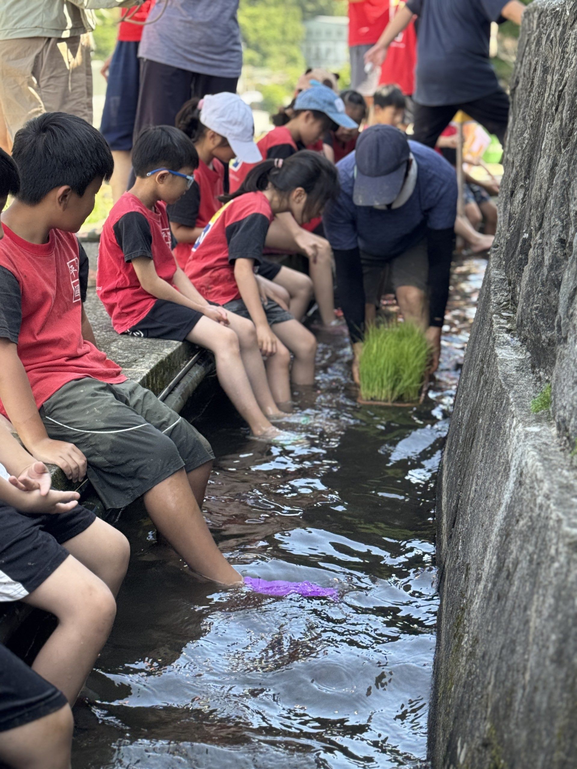 活動後的「水圳洗腳禮」更是孩子們最愛的時刻。三年級鄭定宏同學興奮地分享:「插完秧後跳進水圳,冰涼的圳水沖過腳趾縫的泥巴,感覺舒服得像是大地在幫我按摩!」這種來自大自然的純粹美好,在孩子心中種下了永續的種子。