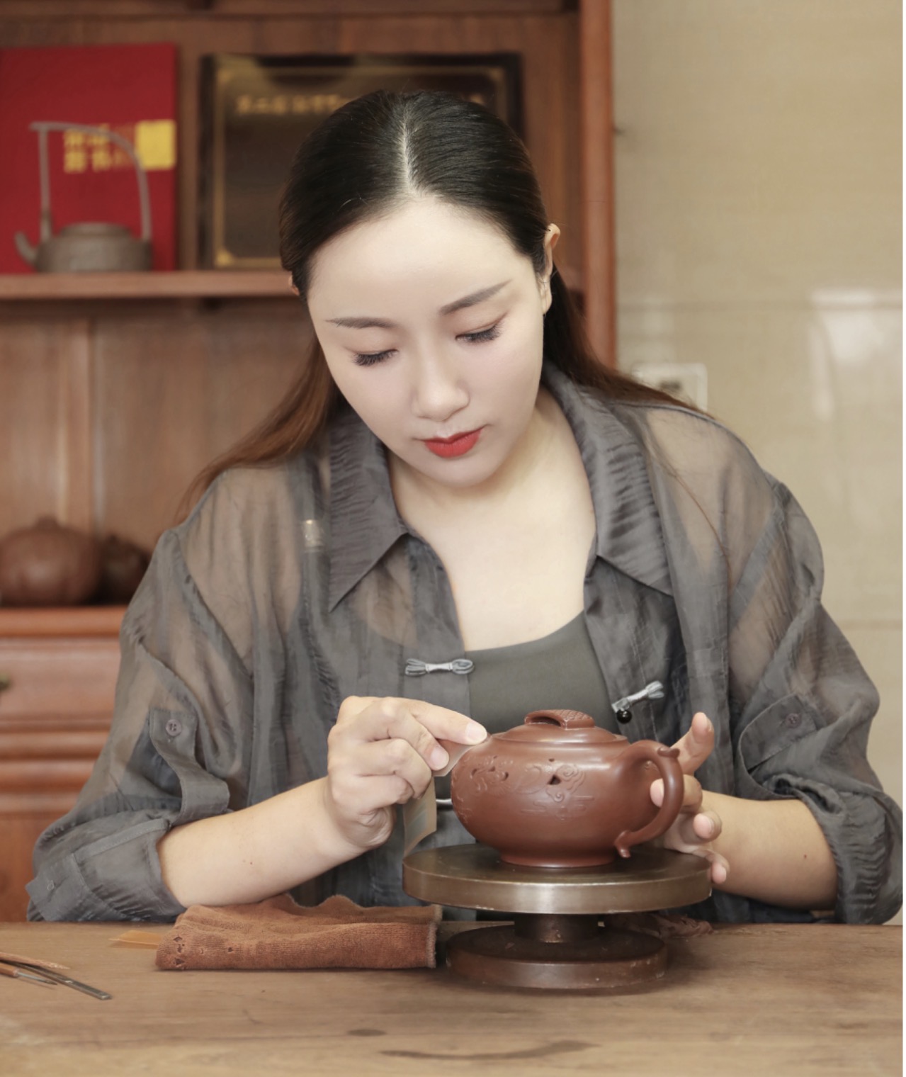 家學淵源 走進紫砂世界的起點破壞與重建 鏤空之中的創新哲學唐風漢韻 女性氣質的藝術投射獲獎與傳承 技藝之外的責任匠心如水 在時間中慢慢沉澱