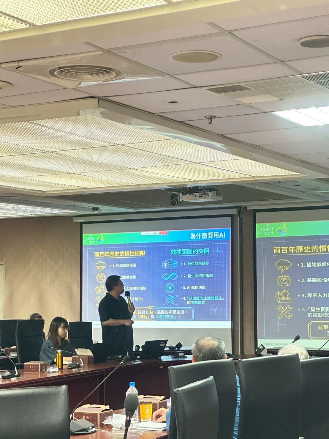 臺鐵公司總經理馮輝昇會中除感謝學界專業支援外,並強調各項設備與路線維護應導入「產品生命週期管理」概念,由被動處置轉為主動預防,並鼓勵將可預防之風險全面納入智慧感測與AI分析機制;馮輝昇總經理也指出在推動「臺鐵黃金十年」的過程中,我們不只是讓系統更安全、營運更穩定,更要讓臺鐵成為一個能善用數據與AI智慧的組織。讓每一位同仁在工作上更有依據、更有信心,也讓旅客能更安心地把行程交給我們。