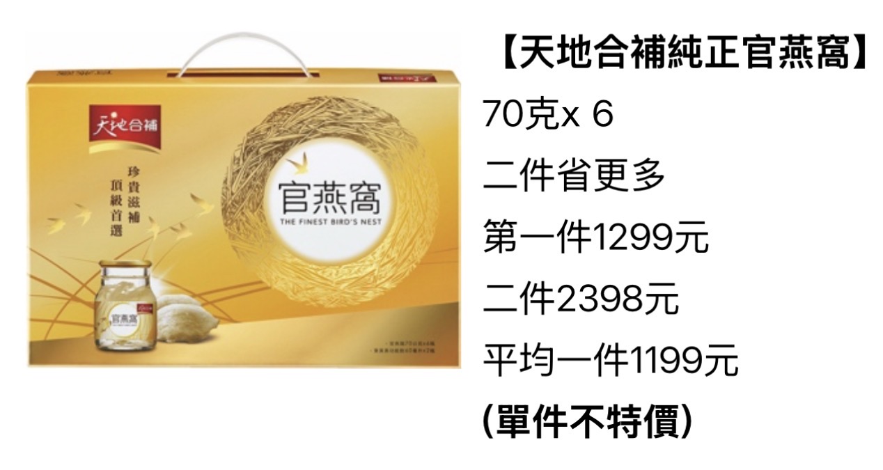 除了甜點饗宴,健康是給媽咪最好的禮物,養身補品,除了指定滿額送折價券,還有許多二件省更多、買2送1、買1送1,像是桂格御蔘禮盒42毫升x 10瓶買1送1平均一件345元,老協珍人蔘精買兩件省更多、天地合補官燕窩兩件省更多、天地合補EXX水亮膠原美顏飲盒裝30毫升x 6包買1送1平均一件284.5元、韓國熊津紅蔘飲禮盒系列70毫升x 24瓶買1送1平均一件828元,品牌商品種類多,幫助媽咪保持好氣色是孝親的好選擇。