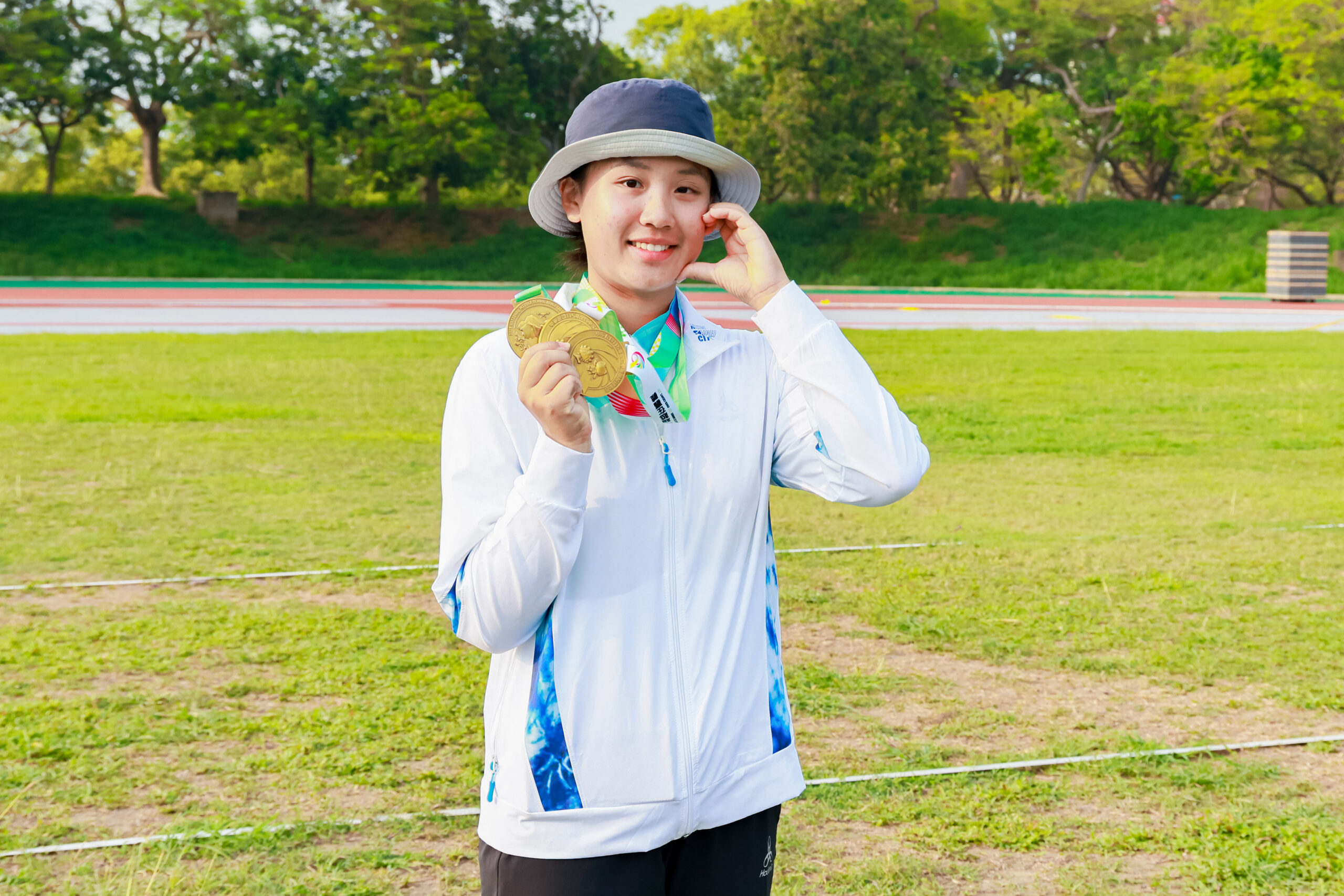 射箭新北三民高中許芯慈率隊完成三連霸並破三項大會紀錄寫下高中生涯完美句點。(新北市體育局提供)