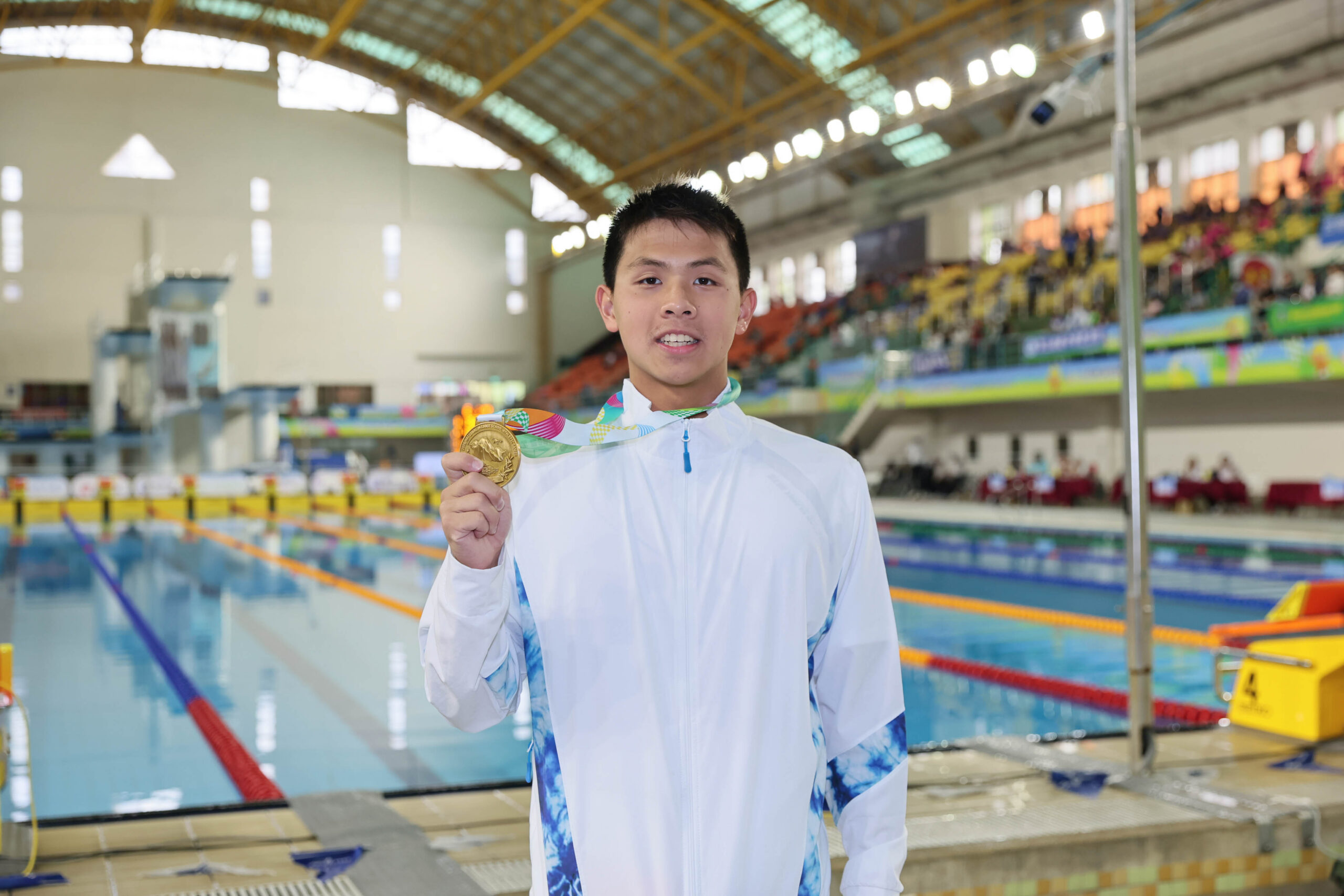 游泳國男組400公尺自由式林口國中蘇柏陵奪金3分58秒51並破大會紀錄。 (新北市體育局提供)