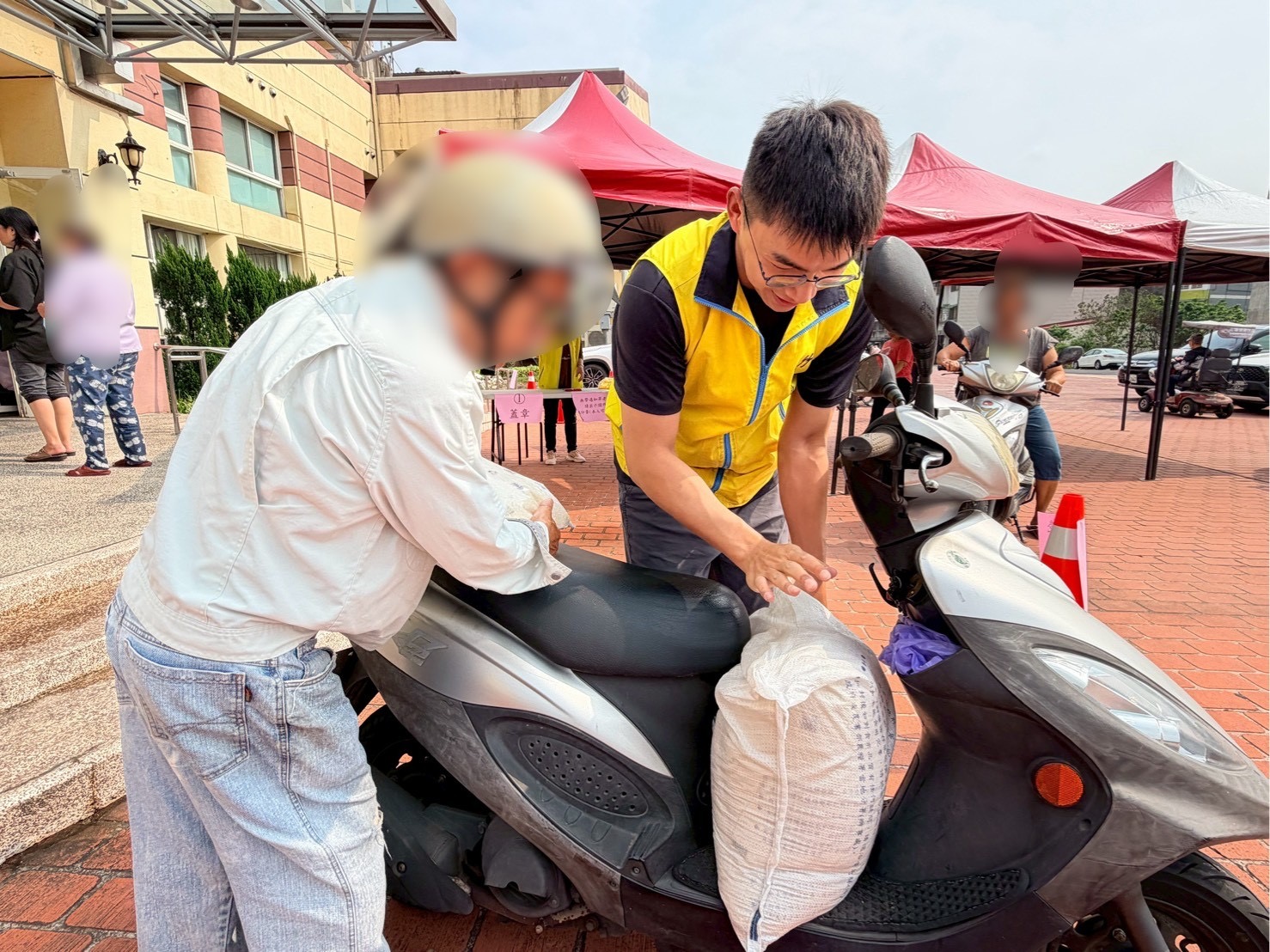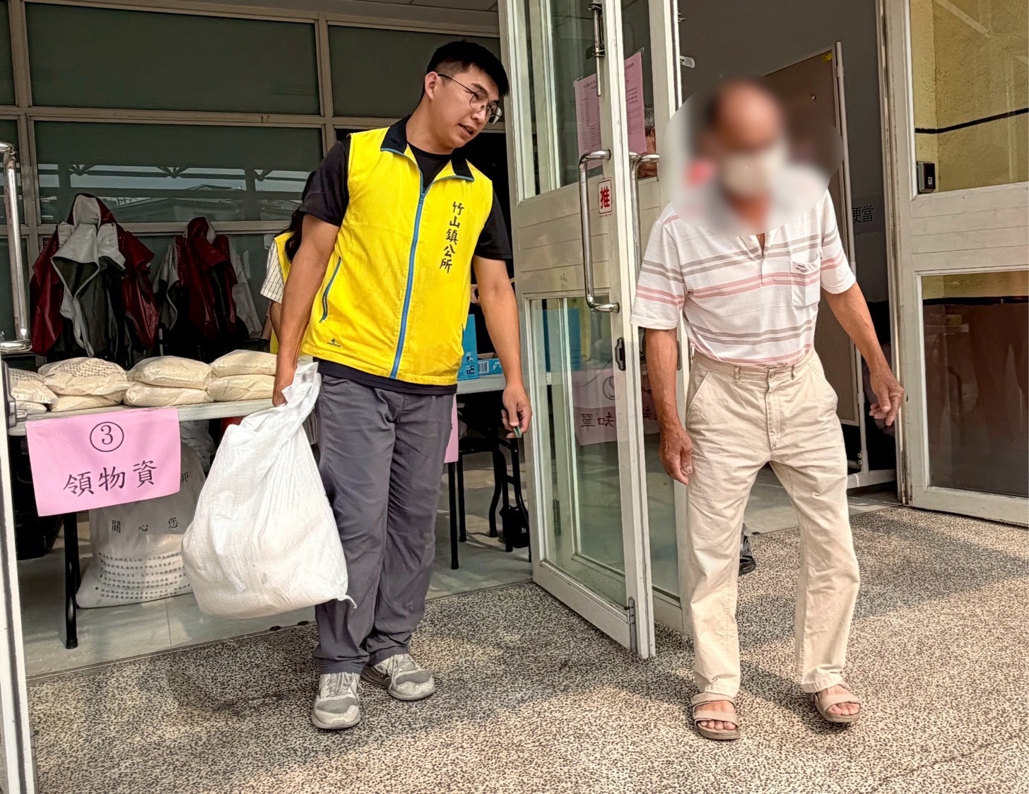 本次救助糧由農業部農糧署中區分署補助提供,每戶可領取5公斤白米2包。發放現場由公所人員協助進行動線引導與秩序維持,民眾依通知時段前往領取,整體作業順暢有序,現場也可見不少長者前來領取,公所人員主動協助搬運白米,互動相當溫馨。