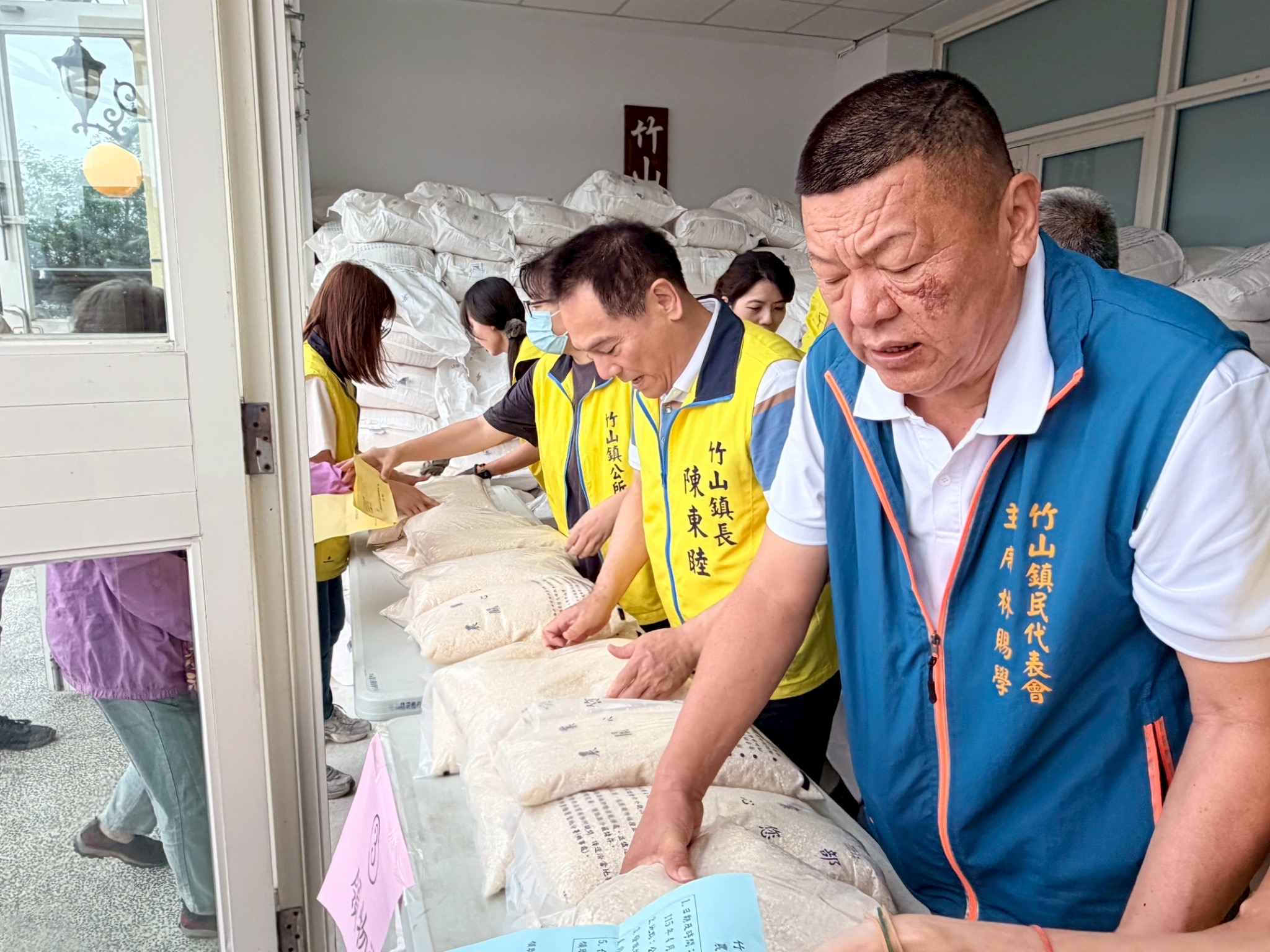 為落實社會照顧政策、減輕弱勢家庭生活負擔,南投縣竹山鎮公所於4月23日及24日,在公所大禮堂辦理社會救助糧發放作業,預計發放白米19,440公斤,嘉惠轄內低收入戶、中低收入戶、中低收入老人及身心障礙者等共2,070戶家庭,透過實質物資挹注,提升弱勢族群基本生活保障。