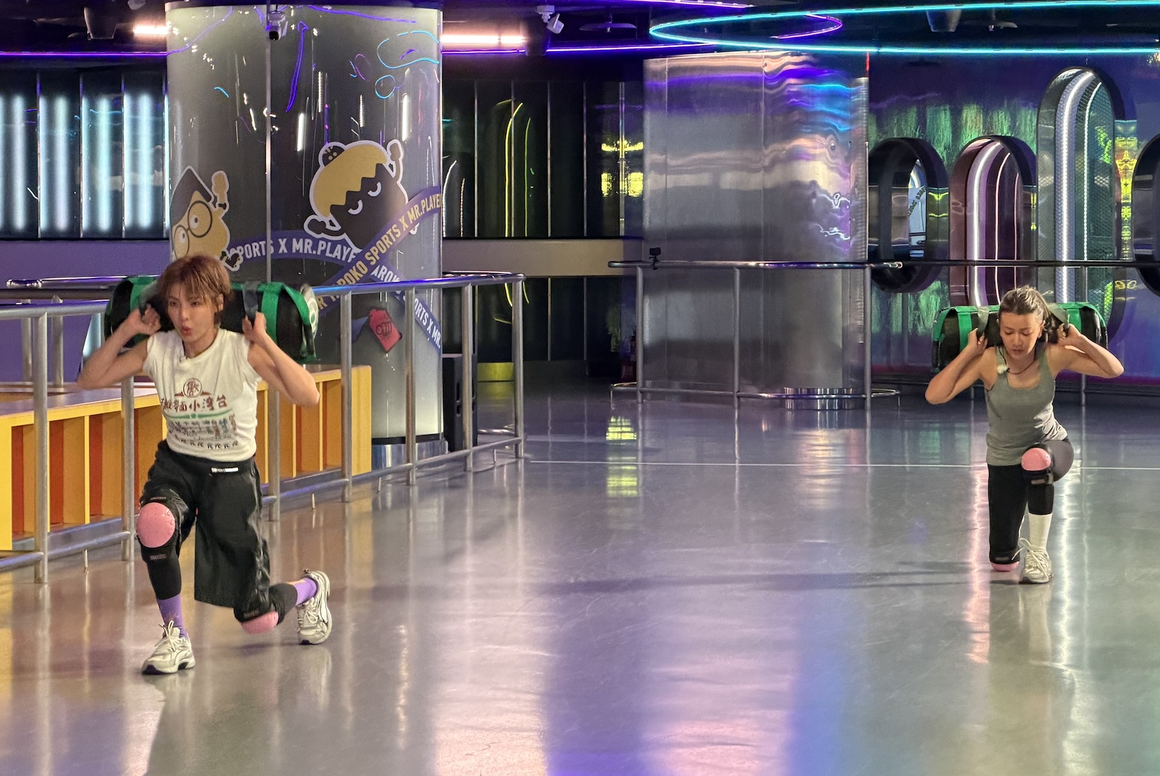 比賽還沒開始就笑料不斷,其中,「最強老公」祖雄輕鬆將佳娜扛上肩,還能進行起立蹲下的動作,體能表現驚艷全場。曾雅蘭見狀立刻對老公侯昌明喊話:「不要認輸!」讓55歲的侯昌明當場苦笑回應:「先不要!」夫妻互動逗趣十足。