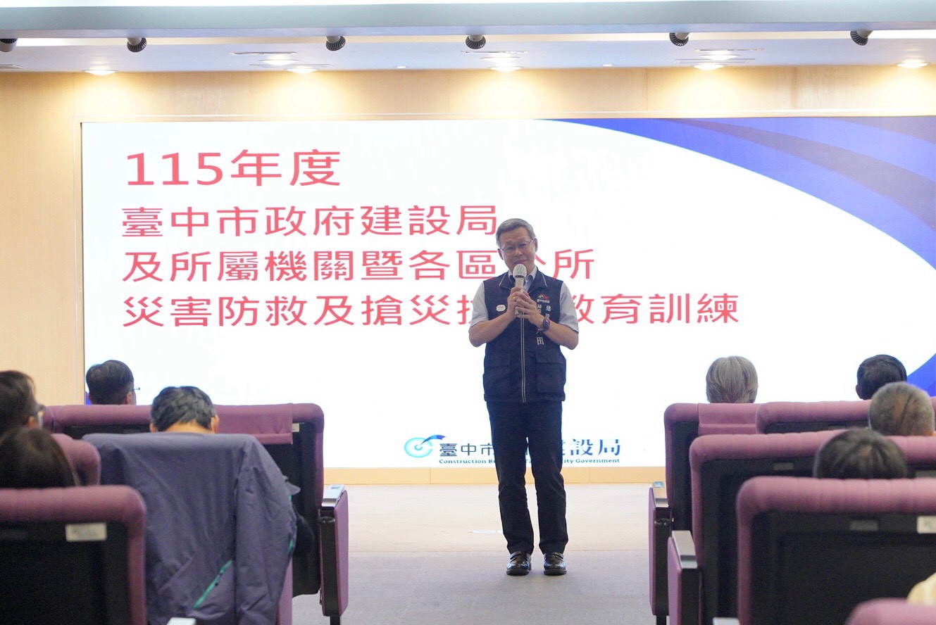 面對全球極端氣候帶來的嚴峻挑戰與汛期即將到來,為守護市民安全,台中市政府建設局今(24)日於市政大樓舉行「115年度災害防救及搶修搶險教育訓練」,由建設局長陳大田親自主持,派訓人員包括建設局及所屬單位、全市29區公所及維護廠商,共計約80人,透過教育訓練全面強化第一線同仁的防災應變量能,確保面對突發災情時能即時、有效應對。