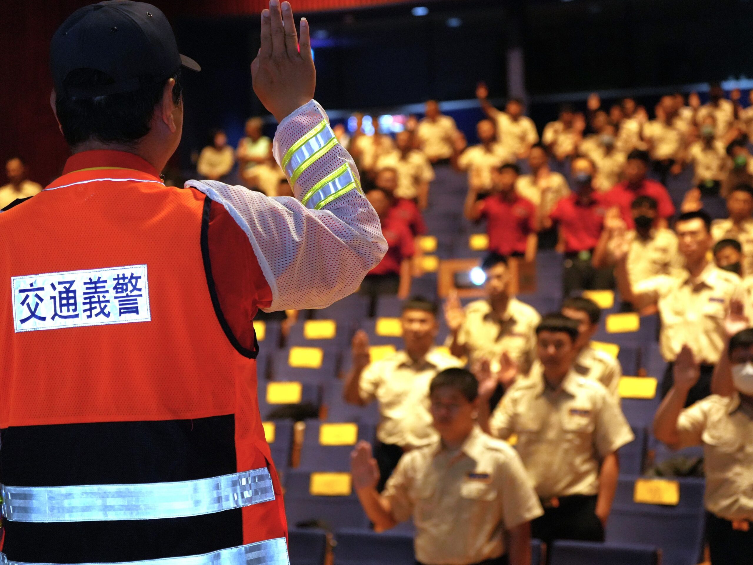 交通義警指導替代役男學習交通指揮手勢