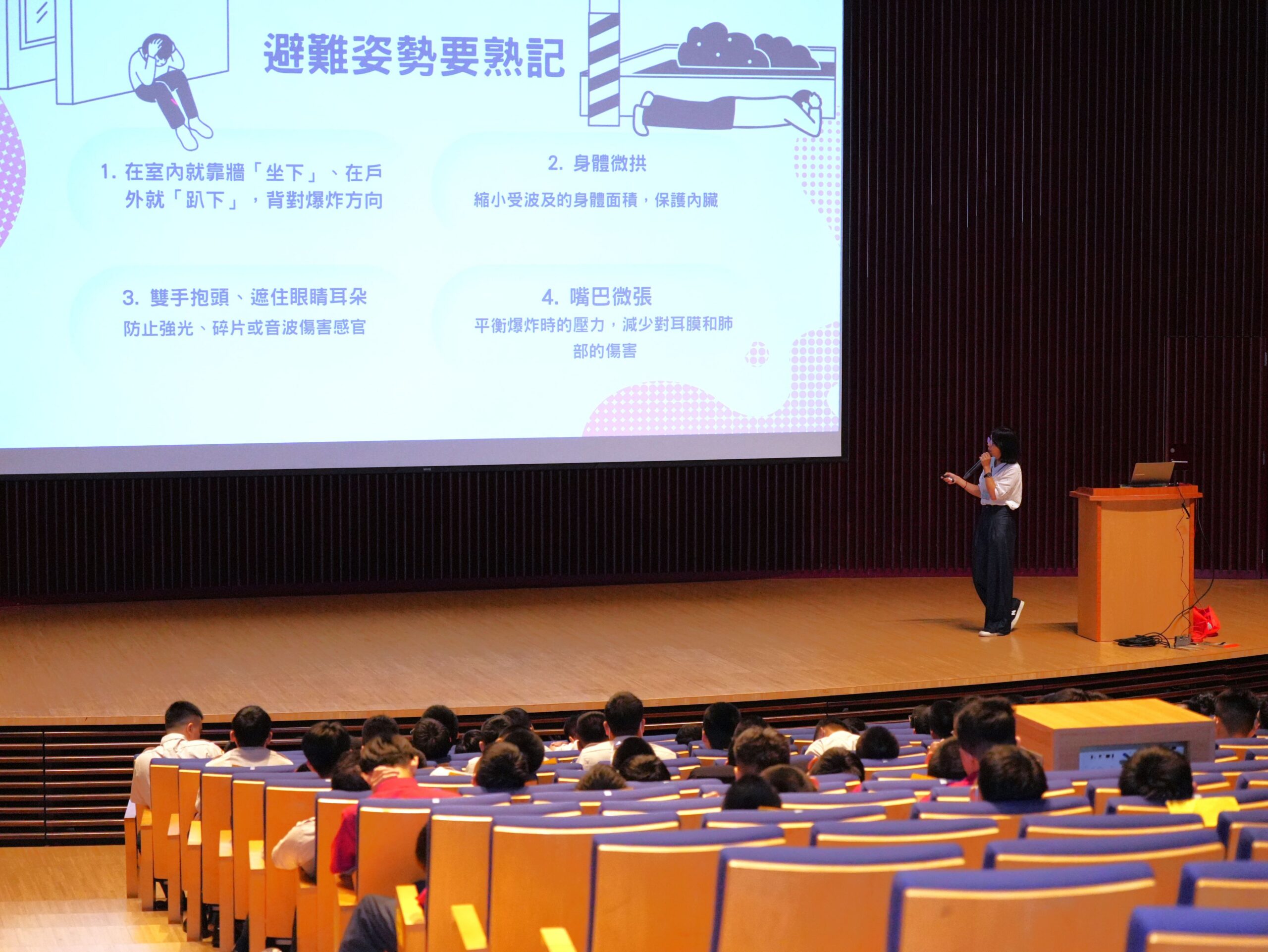 協助役男熟悉防空警報發布時的應變流程、避難原則及避難場所運用方式