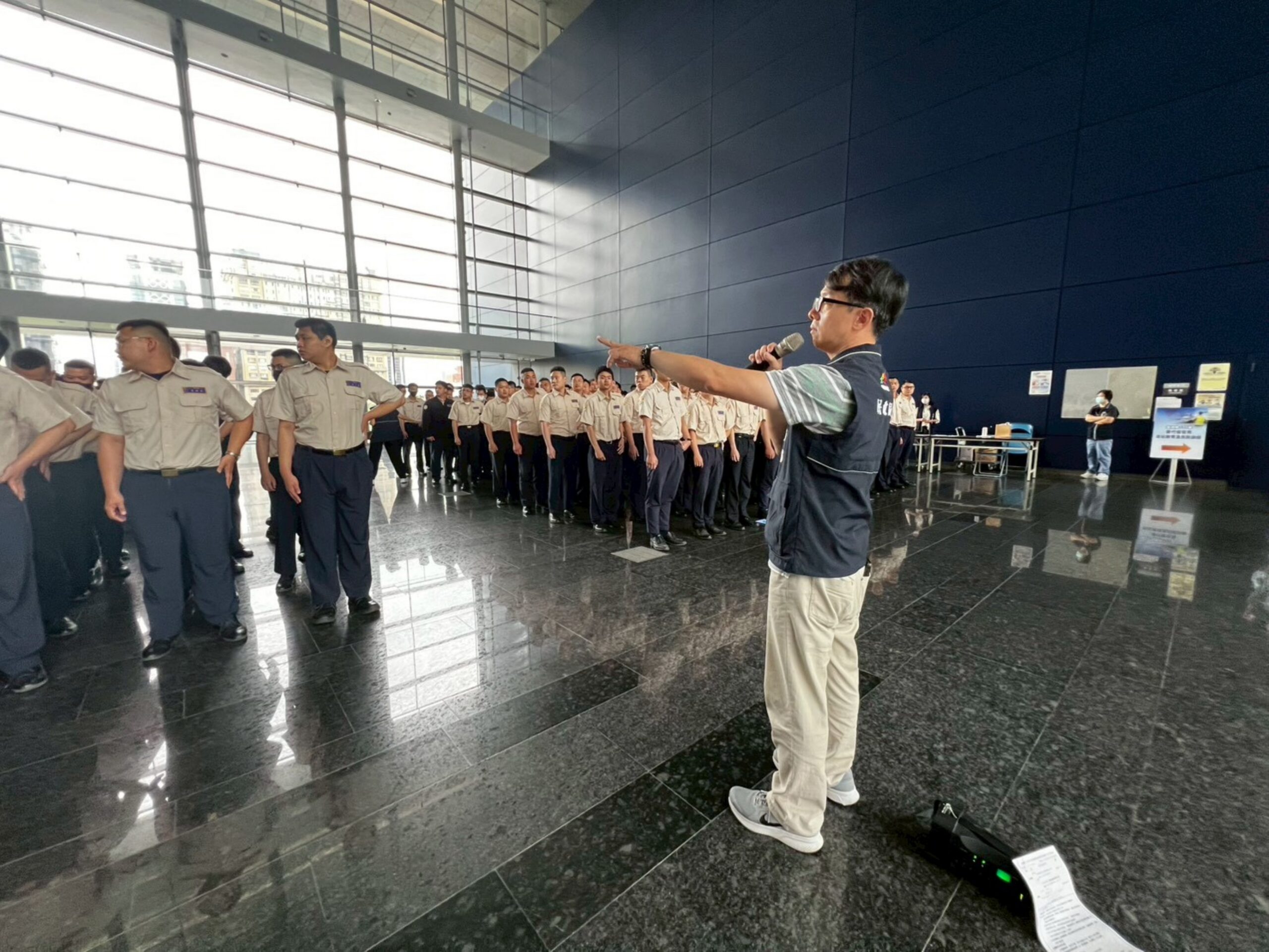 吳局長指出,替代役男在各機關服勤,不僅是協助行政運作的重要人力,也是民眾接觸政府的第一線窗口。市府透過法紀教育與民防訓練,強化役男紀律觀念與專業素養,並著重培養第一線民防應變及實務執勤能力,期盼役男在災害或緊急狀況發生時,能迅速配合指揮,投入災害防救、避難疏散及民生維運等任務,成為守護社會安全的重要力量;未來退役後,也能順利銜接備役編組,持續發揮功能。