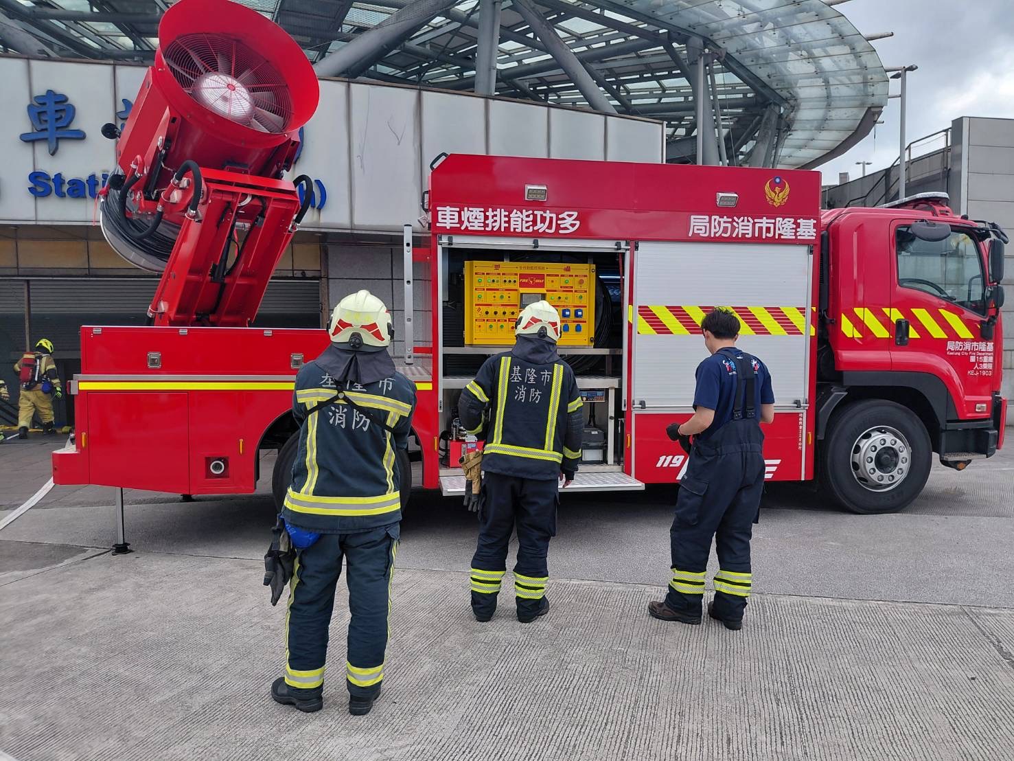 為提升大型公共場所火災應變能力,基隆市消防局第於4月21日在基隆火車站辦理火災實兵演練,動員8個分隊、19輛消防車、2輛救護車、41名消防人員投入演練,由第二大隊大隊長高瓊瑤擔任指揮官,全面檢視火場指揮、戰術運用及各項救災核心能力。