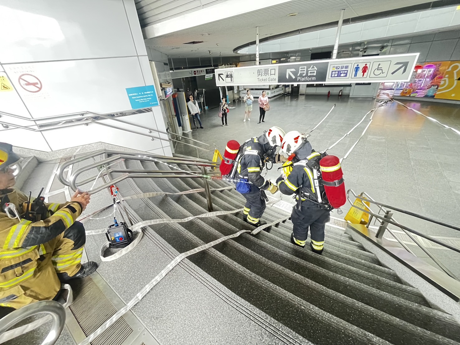 考量車站設施特性,現場採用泡沫系統進行滅火,降低大量用水可能造成之設備損害。同時由安全幕僚落實安全管理機制,逐一檢查消防人員個人防護裝備、空氣瓶壓力及救命器具使用狀況,並透過雙人互檢制度,確保進入火場人員裝備完整無虞。