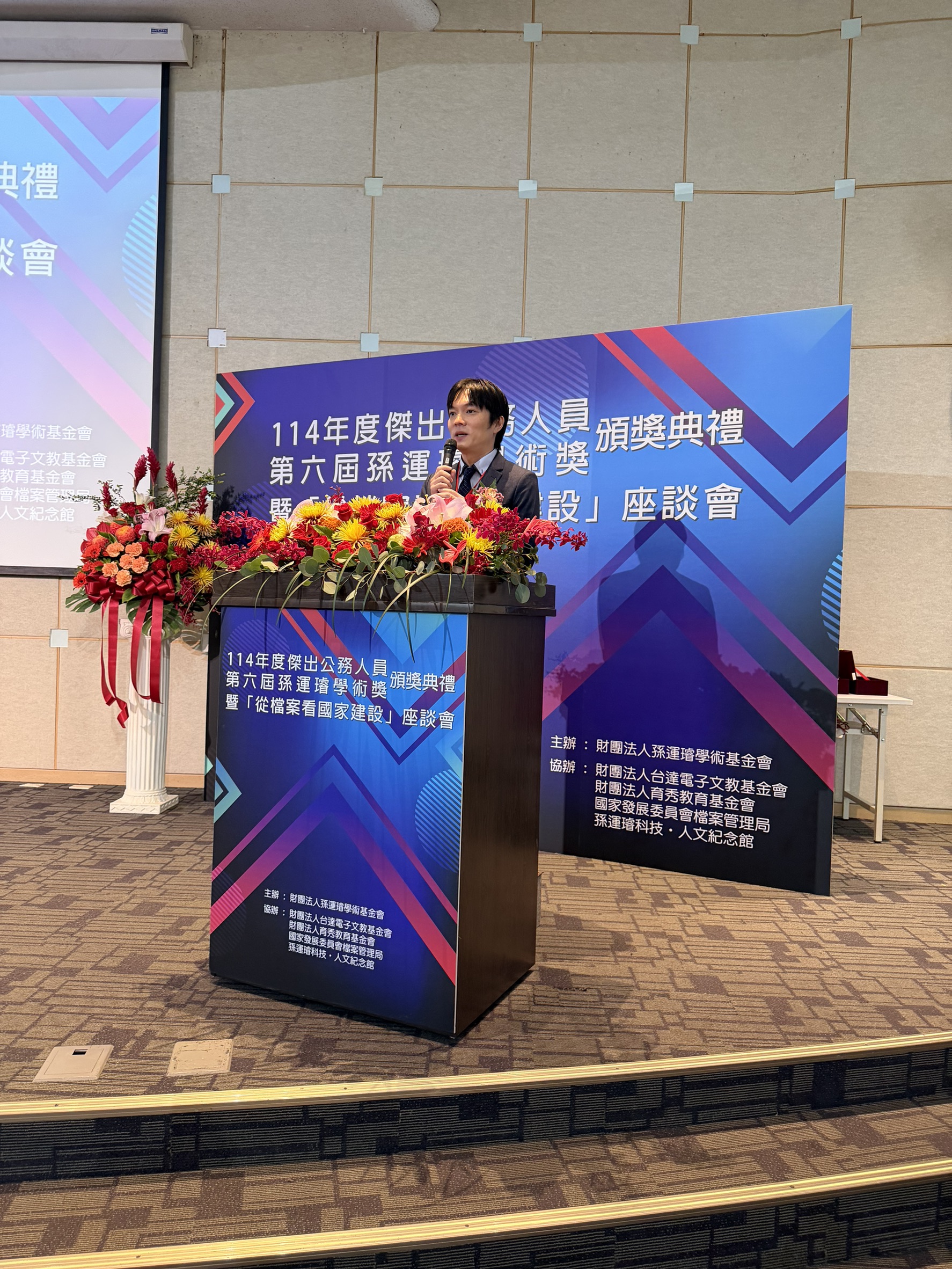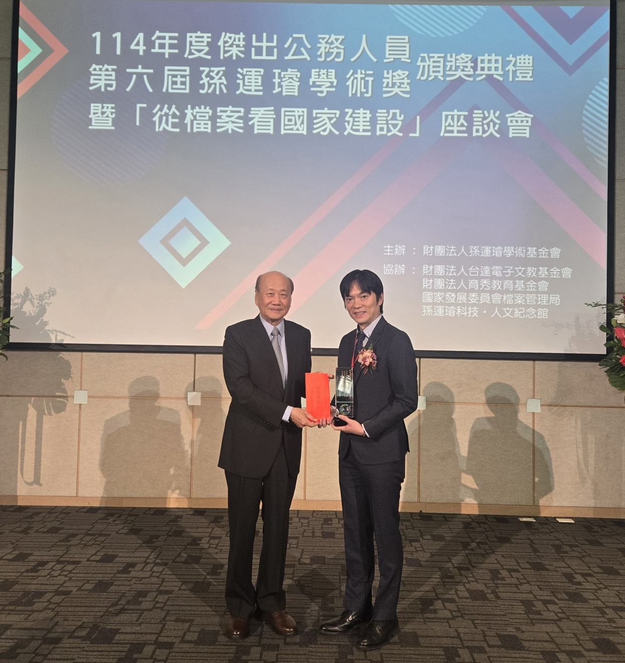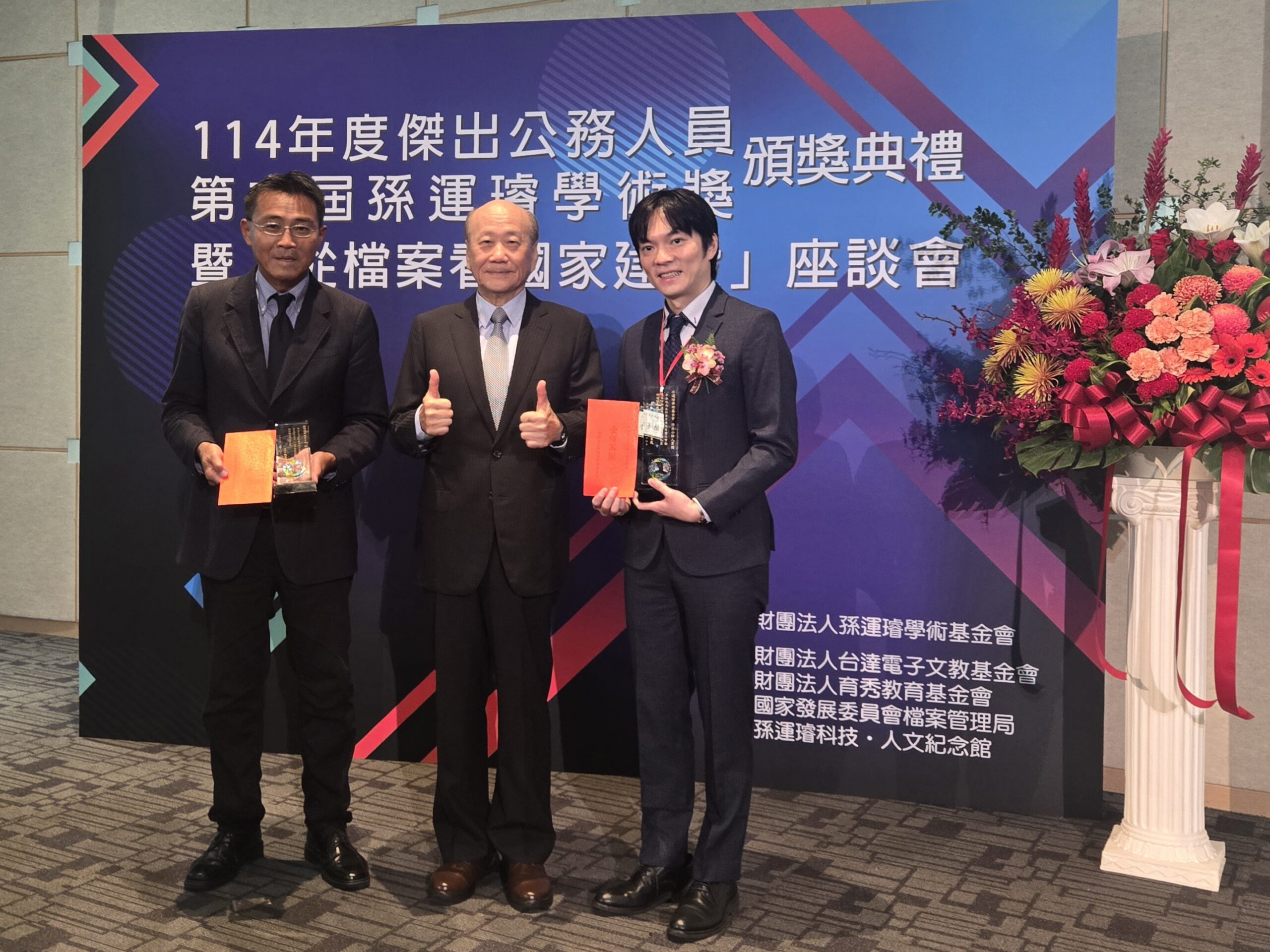 財團法人孫運璿學術基金會今(24)日舉行「114年度傑出公務人員頒獎典禮」,台中市繼建設局副局長陳永欣113年度獲獎之後,今年再由法制局長李善植以法制專業及多項公共服務創新貢獻,獲頒此項殊榮。