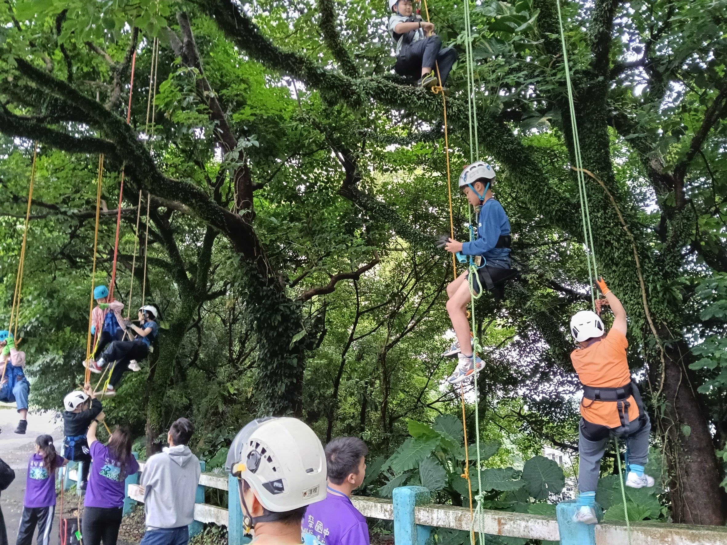 兒少處處長吳雨潔(上圖左)今日也親自來到活動現場,與孩子們共同參與,一同聆聽教練講解攀樹生態與環境保育知識。