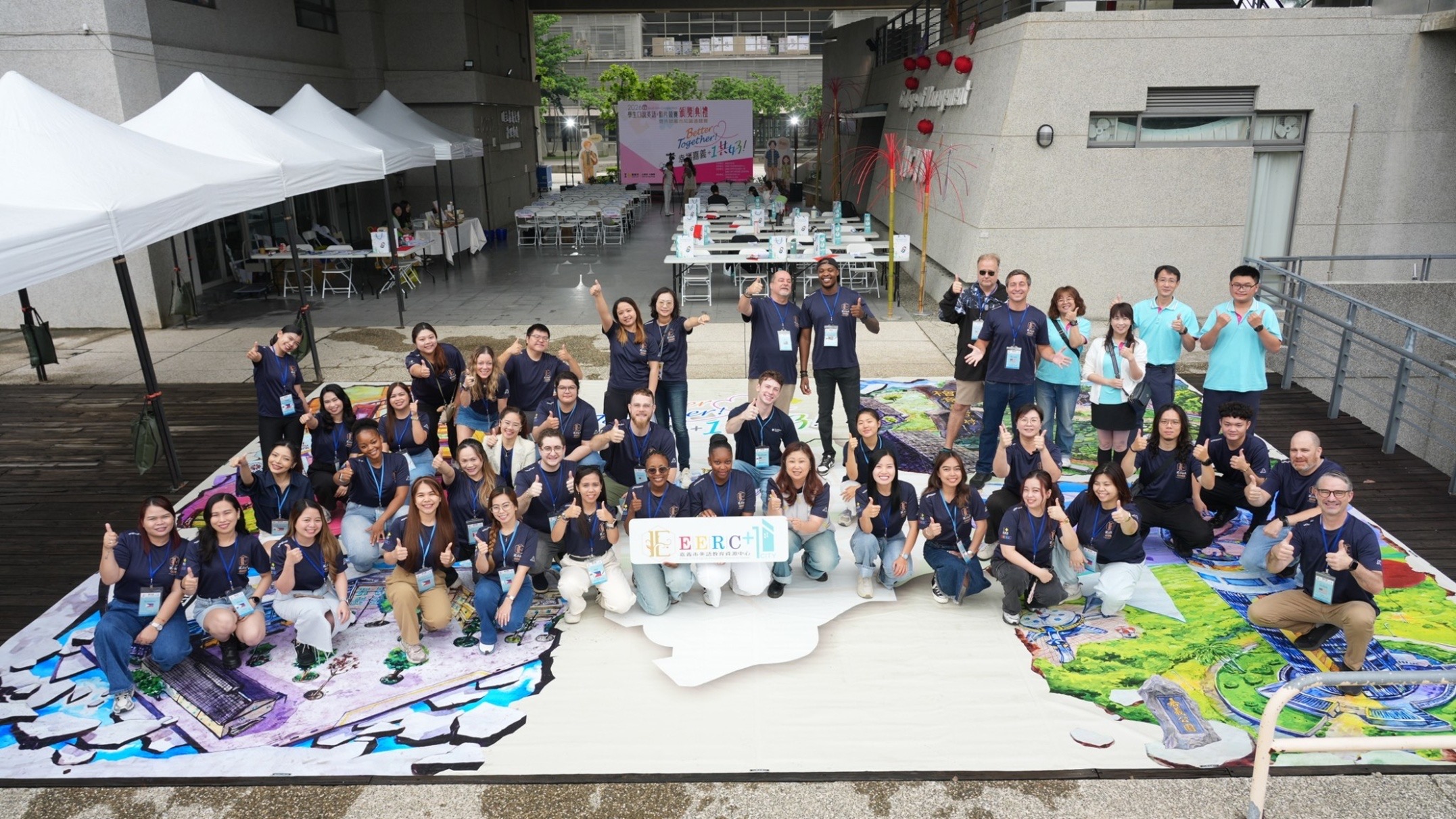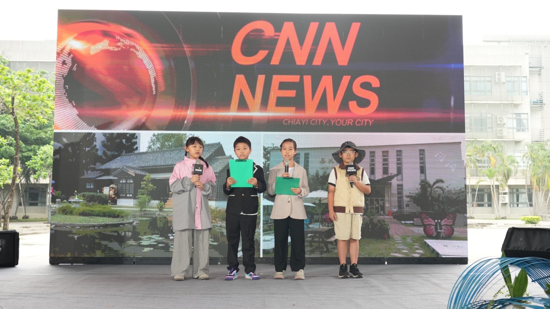 教育處說明,本活動邁入第五年,「共好」已從理念逐步轉化為具體行動。今年學生透過雙語教材,以英語走讀嘉義,從在地文化、歷史場域到生活風貌,創意詮釋城市故事;同時邀請全市外籍英語教師以中文學習嘉義在地知識,形塑「學生說英語、外師說中文」的學習情境,實踐「Language as a Link, Let’s Learn Across Chiayi City」的核心精神。今年一大亮點為「外籍教師中文競賽」,共計43位外師參與「嘉市知識通」活動,內容涵蓋成語書法創作與城市知識問答;另有11位外師組隊演唱中文經典歌曲〈情非得已〉、〈對你愛不完〉及〈月亮代表我的心〉,展現對語言與文化的高度投入,將現場氣氛推向高潮,充分體現「教學相長」的精神。