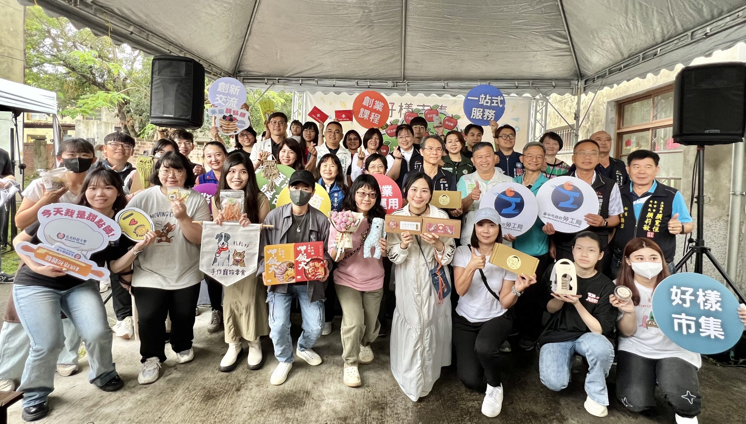 台中市政府勞工局辦理「好樣市集」於今(25)日盛大開幕,結合職業訓練成果展,吸引眾多民眾參與。現場集結20組青創品牌與多校學生團隊,透過文創手作、小農產品及創意美食,展現台中青年創業活力,同時呈現職訓學員數百小時的訓練成果,打造春日創業嘉年華。