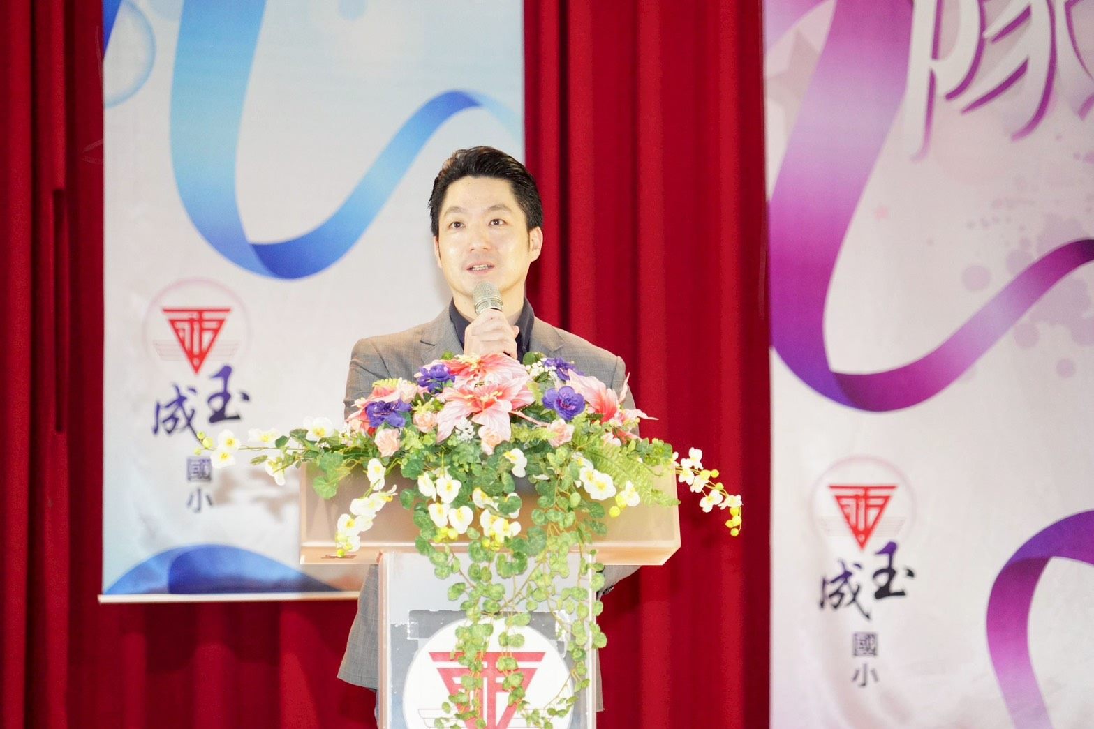 蔣萬安繼續說到,玉成國小培養了無數優秀的人才,有些校友走進科技業,有些投身公共服務,但不論在哪一個領域,都代表玉成國小的傳統跟精神。