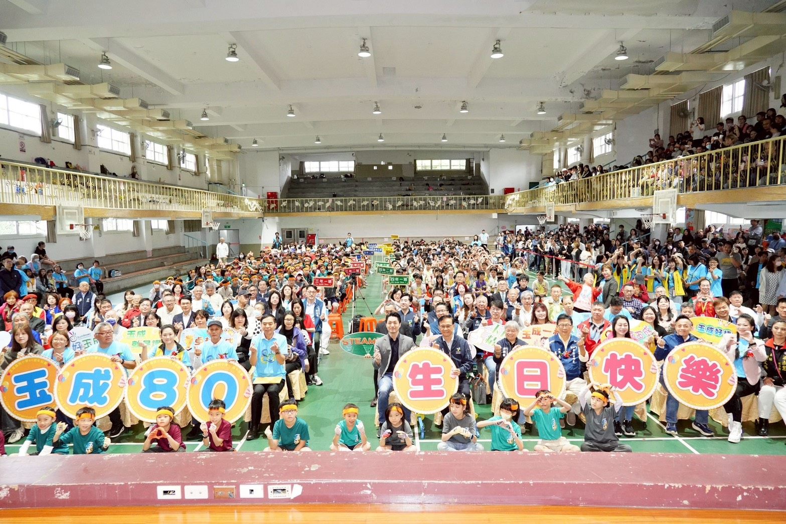 他特別喜歡今天校慶的主題:「三代同堂」。爺爺奶奶是校友、爸爸媽媽是校友、孩子現在在這裡唸書,這是一個非常難得的畫面。代表的不止是一家人念同一個學校,更代表的是三代人共同寫一段歷史。玉成國小不只是一個學校,更是一個大家庭。大家把共同的記憶、情感、價值,一代一代地傳承下來。