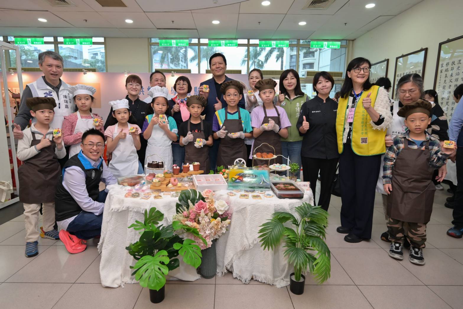 朱惕之副市長跟小朋友一起製作新北市徽的糖霜餅乾。(新北市勞工局提供)