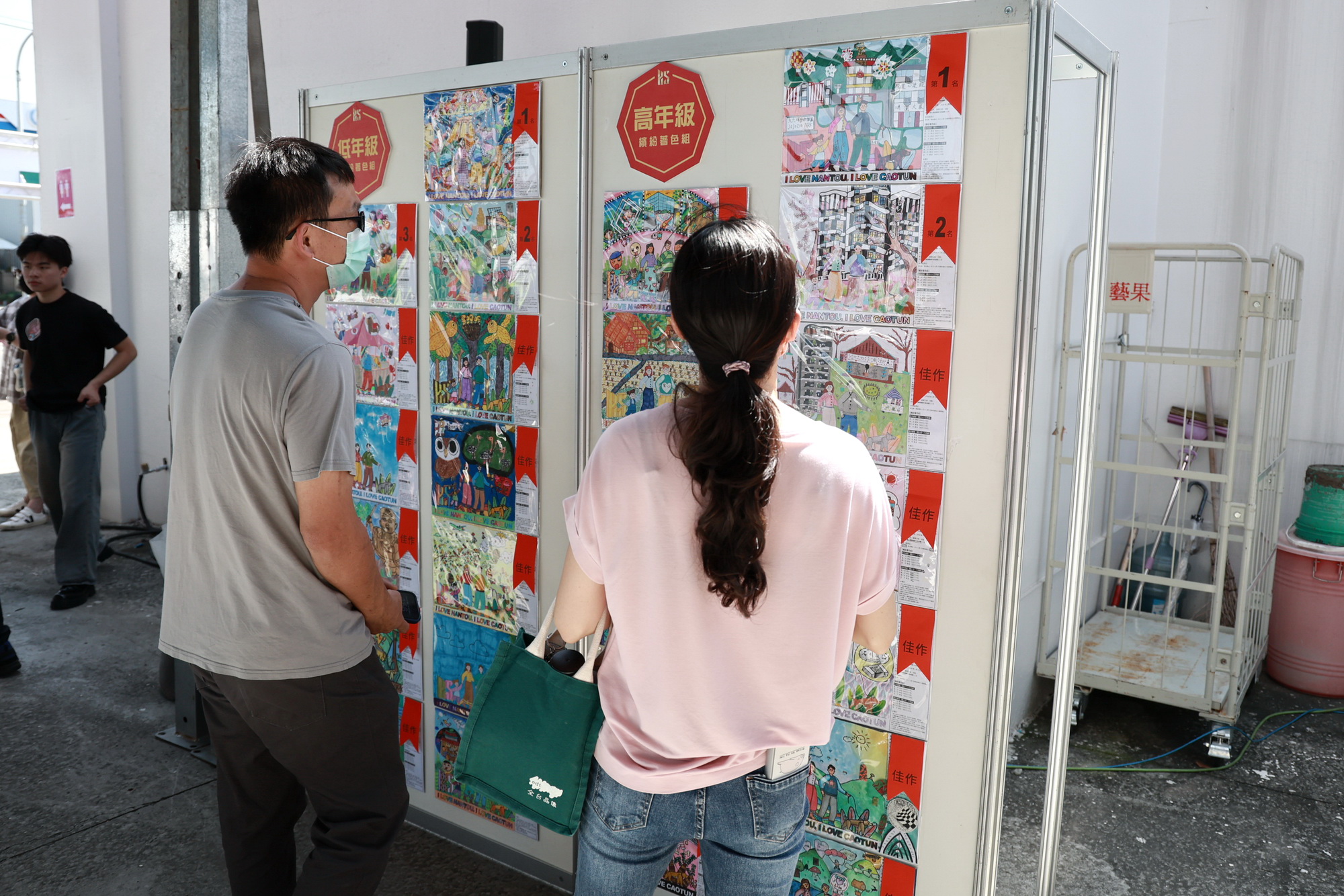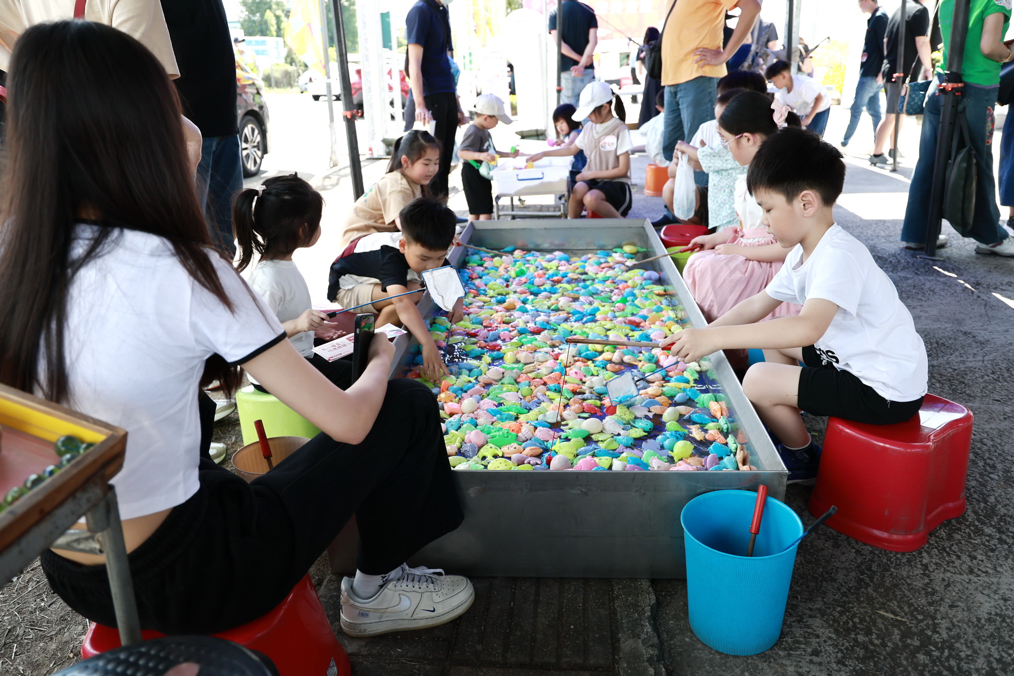 活動當天氣氛熱絡,現場除展示了所有得獎的精彩畫作,園遊會更結合母親節與親子體驗,有按摩、美甲服務、多肉植物、絹花手作DIY,還有小朋友最愛的打彈珠、撈魚與沙雕等小遊戲,讓家庭在輕鬆氛圍中共度歡樂時光。舞台則由歌手蔡佳麟與麗小花接力演出,以歌聲串聯情感,帶動現場溫暖氛圍。