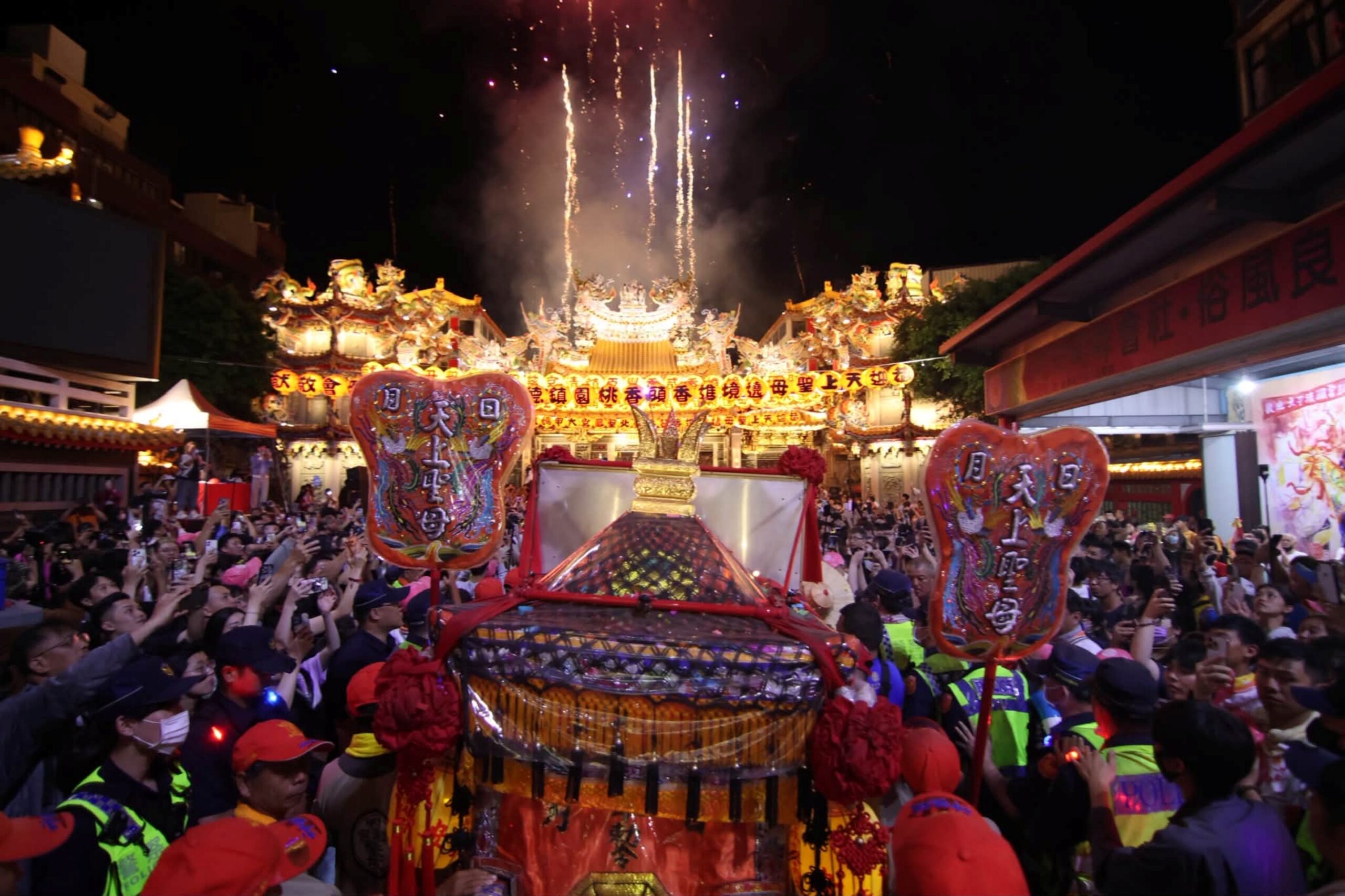 大甲媽鑾轎於凌晨1時21分返抵鎮瀾宮,絢麗煙火點亮大甲夜空