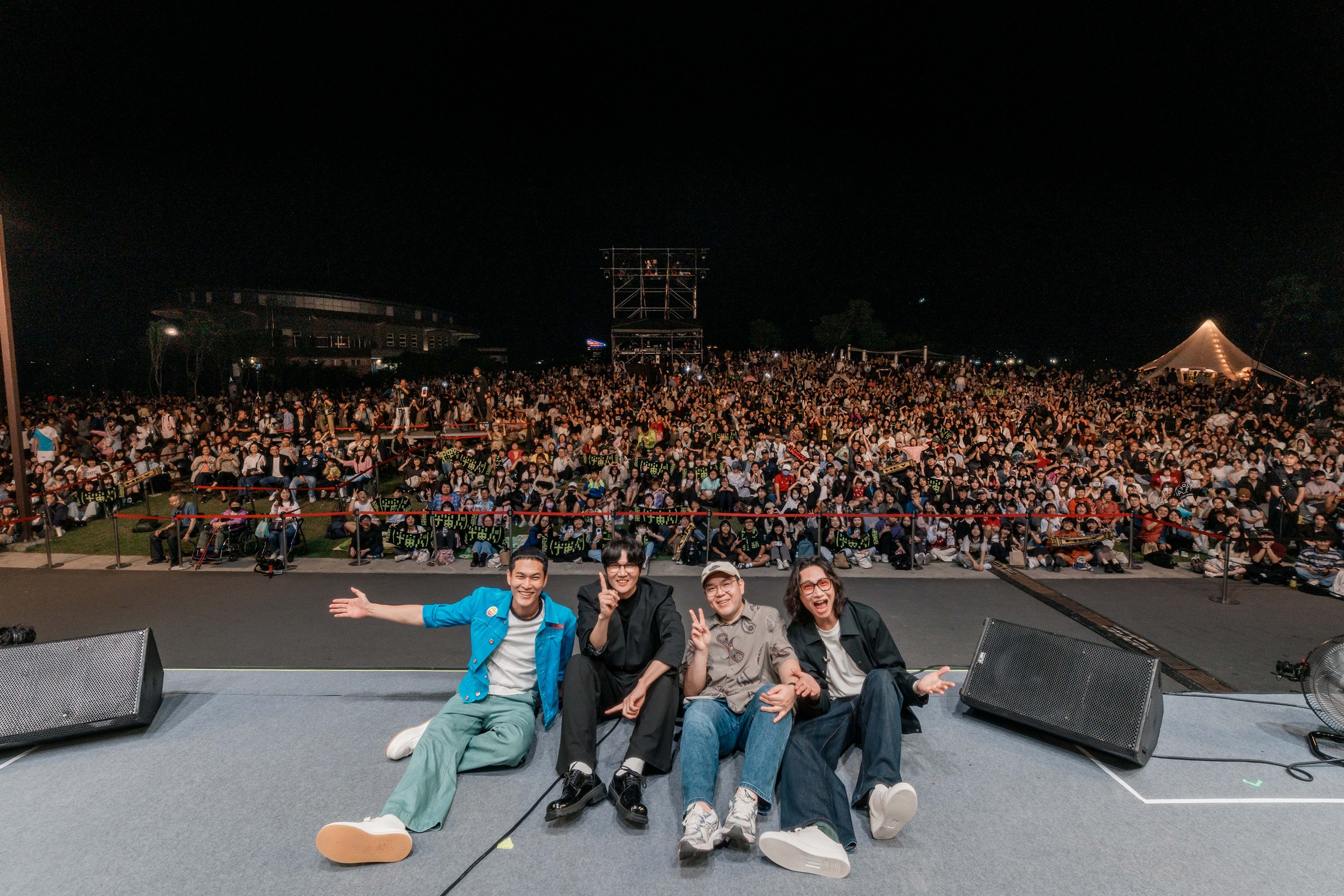 至於壓軸登場的金曲樂團宇宙人一連帶來〈陪我玩〉、〈你的樣子〉、〈那你呢〉、〈藍色的你〉、〈我還繞著你在旋轉〉、〈不曾寧靜的夜〉、〈這就是我愛你的方法〉等「氛圍感強」的七首金曲,為本次活動注入了獨有的浪漫搖滾靈魂。首度來到新北市美術館開唱,宇宙人不僅被新美館前衛的建築外觀所震撼,貝斯手方 Q 更驚嘆表示:「這感覺非常新鮮!平日多在音樂節或室內場館演出,但這次等於是在一件巨大的『公共藝術品』旁邊表演,音樂彷彿也被裝進了整個藝術空間,成了整體感官體驗的一部分,真的很酷!」