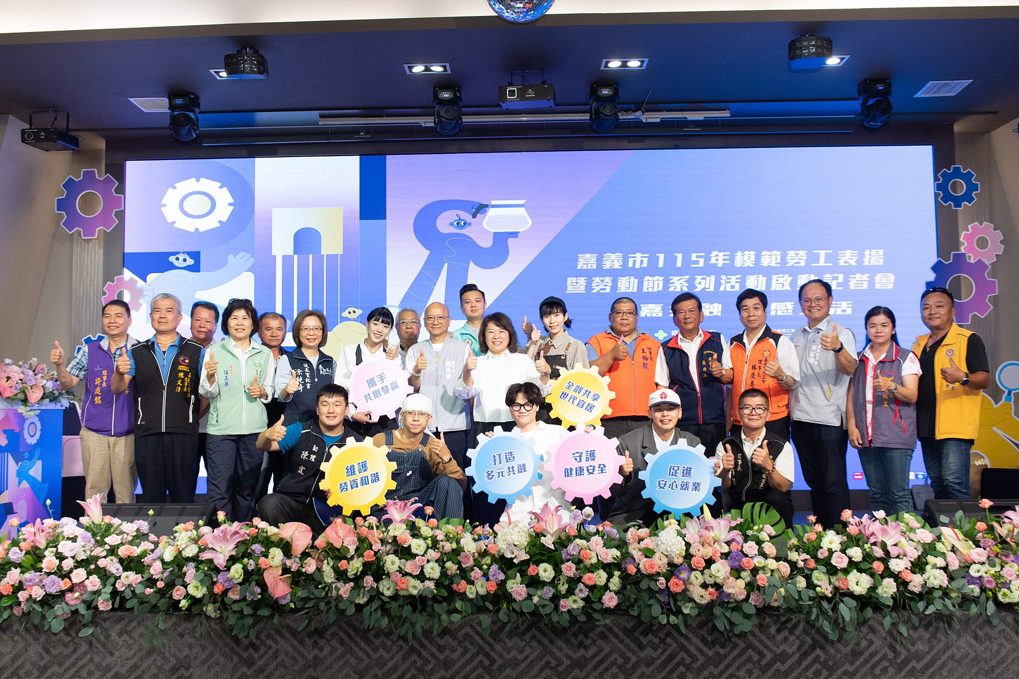 嘉義市政府於今(27)日舉辦「115年模範勞工表揚大會暨勞動節系列活動」記者會,嘉義市長黃敏惠出席頒獎,向來自各行各業的 53 位模範勞工致上最高敬意與祝福。感謝勞工朋友們堅守崗位及無私奉獻,不僅是職場的標竿,也是嘉義市的繁榮奠定基石,更是推動城市前進的動力。