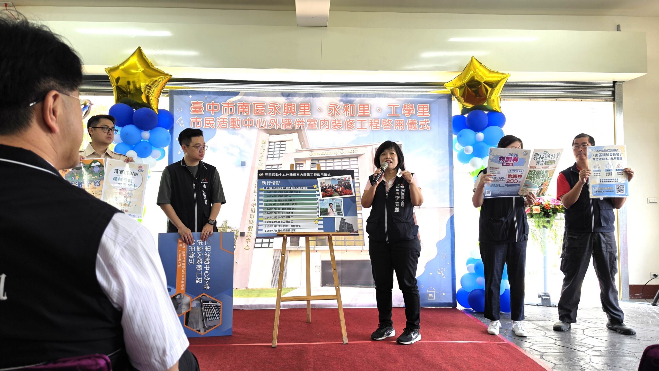 南區區長李美麗表示,此次改善工程依地方實際使用情形規劃辦理,針對民眾需求強化場地管理與服務機能,不僅提升活動中心使用便利性,也讓公共空間更加完善友善。她感謝永興里長陳松鶴、永和里長李起綸及工學里長王文明積極反映地方需求、協助爭取資源,並在區公所與市府團隊合作下順利完成工程,齊力提升活動中心整體使用品質。未來區公所也將持續盤點轄內公共設施需求,逐步推動修繕與優化,營造更安全、舒適的活動場域。