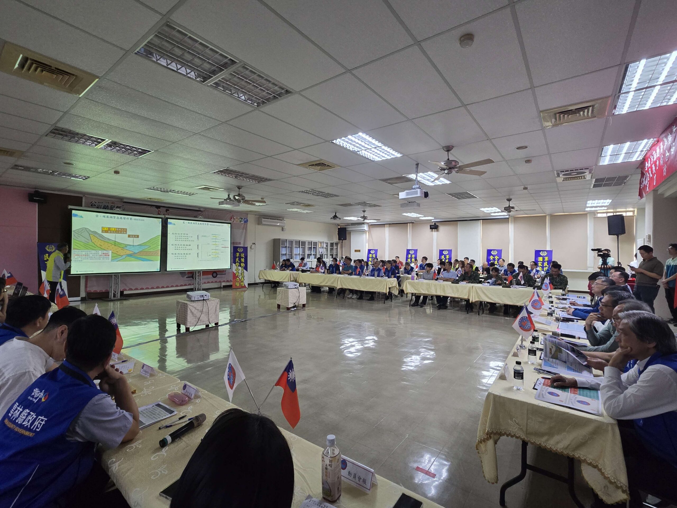 行政院災害防救辦公室、行政院動員會報及臺閩、中區戰綜會報等中央單位到場視導,了解雲林縣三會報執行情形;縣府各局處、各鄉鎮市公所及公民營事業單位約120人與會,強化防救災動員能量與橫向協調機制。