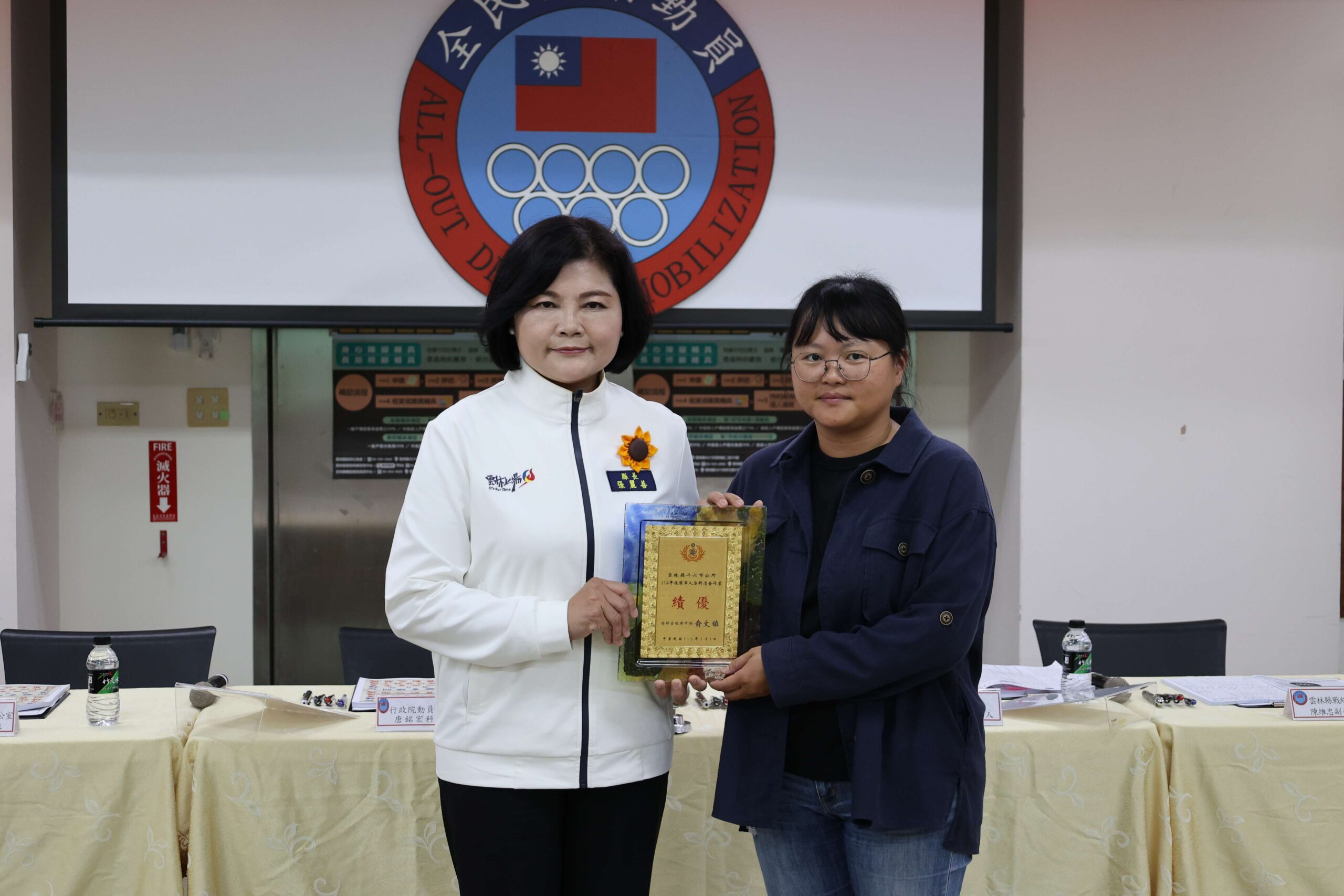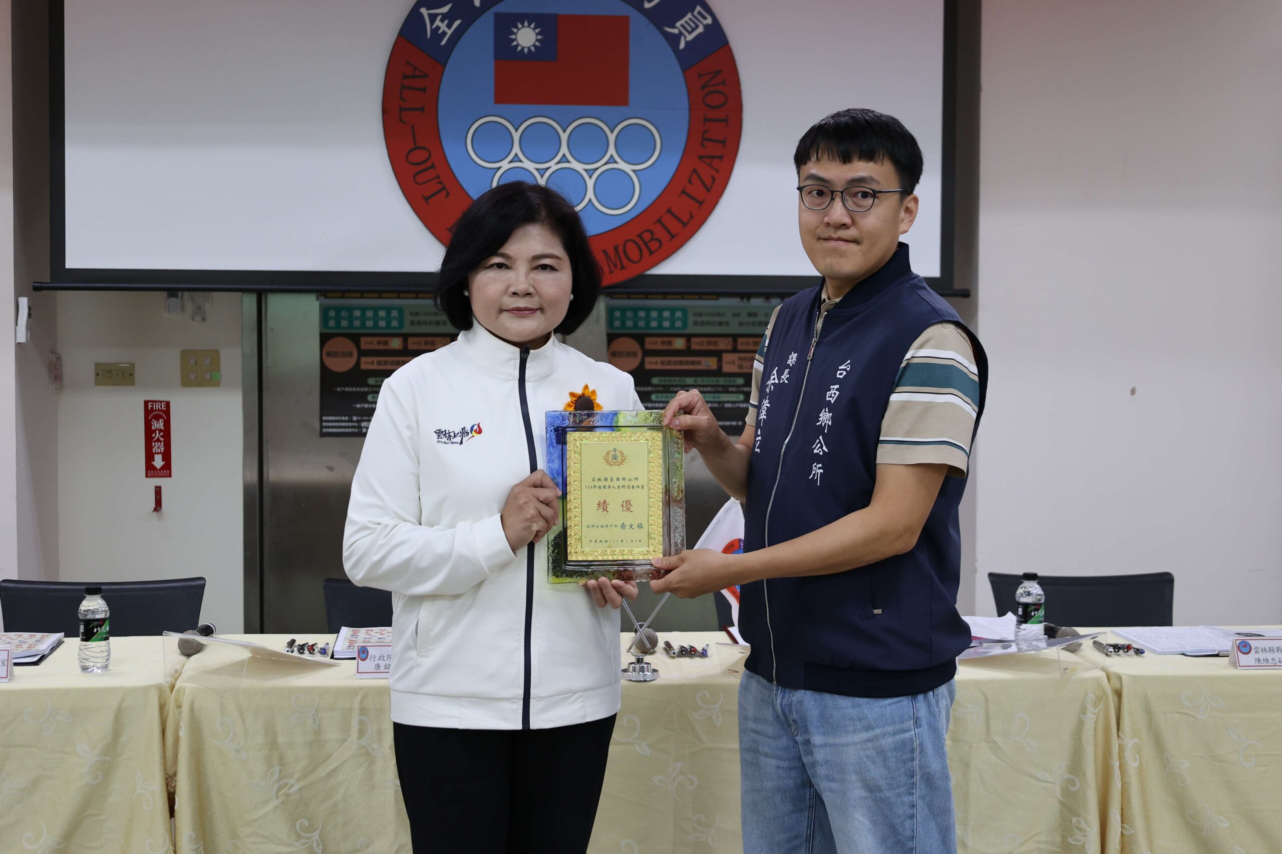 115年度全民防衛動員準備業務、全民戰力綜合協調及災害防救三合一會報第1次定期會議,由縣長張麗善率縣府團隊於今(27)日在雲林縣政府社會處2樓召開,並親自表揚災害防救業務績優之鄉鎮市公所,同時感謝縣府團隊、警消、國軍及公民營事業單位在防救災與動員準備工作上的辛勞與付出。