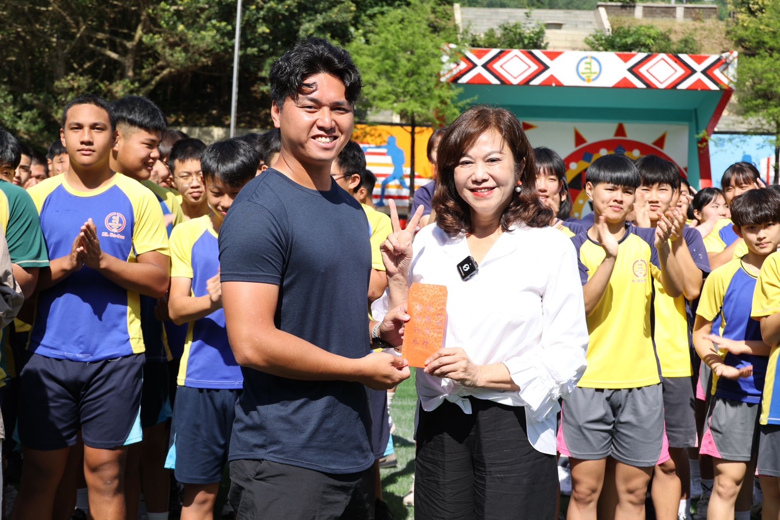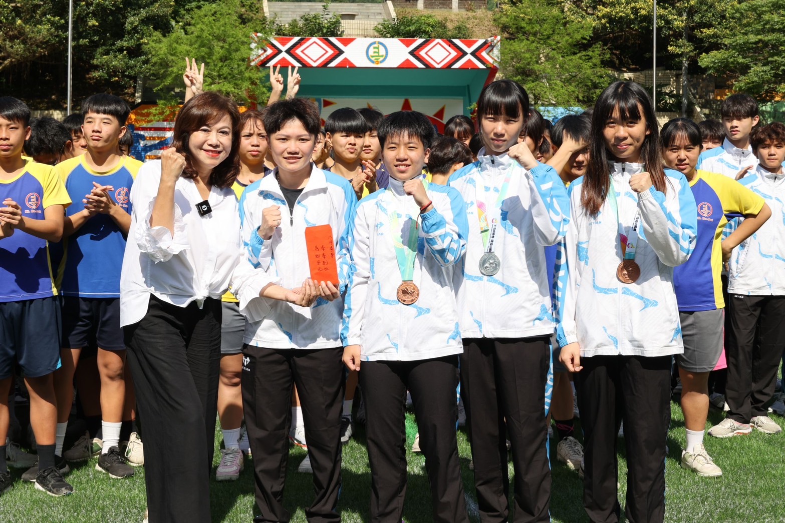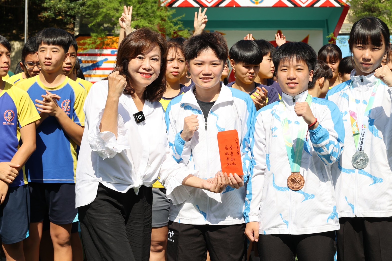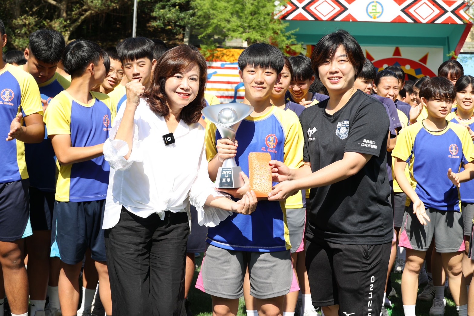 邱佩琳說,非常感謝八斗高中師長、教練的付出與指導,感謝選手同學的努力,市府作為選手、學校最堅強的後盾,一定要提供孩子完善安全的場地,讓同學可以安心訓練、好好學習。之前看過橄欖球隊同學的比賽,親自到場為他們加油,教練說泥濘的操場凹凸不平,選手腳踝容易扭到受傷,同學也不敢放心練習,因此市府編列預算,全面翻新八斗高中操場,也是目前全市學校最接近標準的橄欖球場;另外包含排球場館活動中心的修繕、還有移動式拳擊擂台,市府持續優化硬體環境,讓學生能無後顧之憂地精進,在優質場域中發揮潛能、再創佳績。