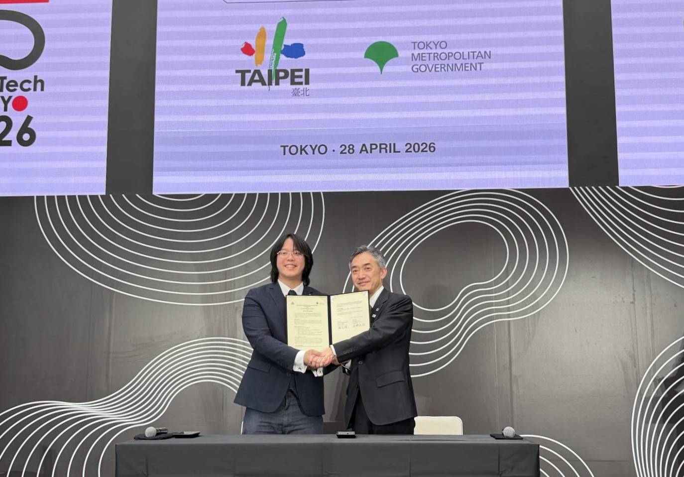 推進首都級科技外交,臺北市政府與東京都廳今(28)日於「SusHi Tech Tokyo 2026」大會主舞台正式簽署數位治理合作備忘錄(MOU)。締約儀式由臺北市政府資訊局長趙式隆與東京數位服務局長高野克己代表,確立雙邊在公共行政人工智慧(AI)運用與數據驅動治理之實質合作框架。此大會主線議程,具體展現市府團隊輸出市政科技之施政成果。