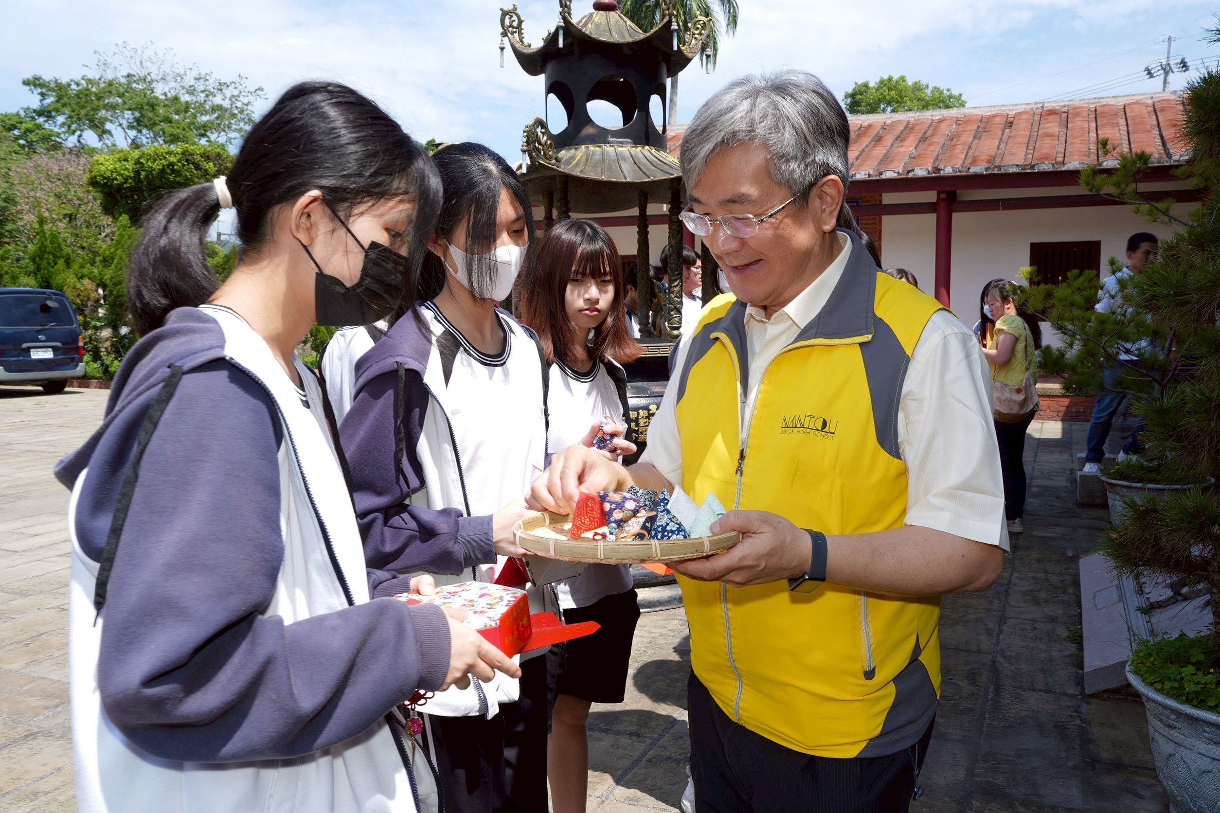 活動現場並致贈「考生祈福禮」給每位考生,內容包含祈福文具組、包子、客製姓名的狀元糕與手縫粽子香包。祈福文具組陪伴同學應考,包子取「包中」吉祥寓意,狀元糕象徵學業有成、金榜題名,手縫粽子香包則承載平安祝福,一針一線都充滿心意,盼考生帶著滿滿祝福迎接會考。