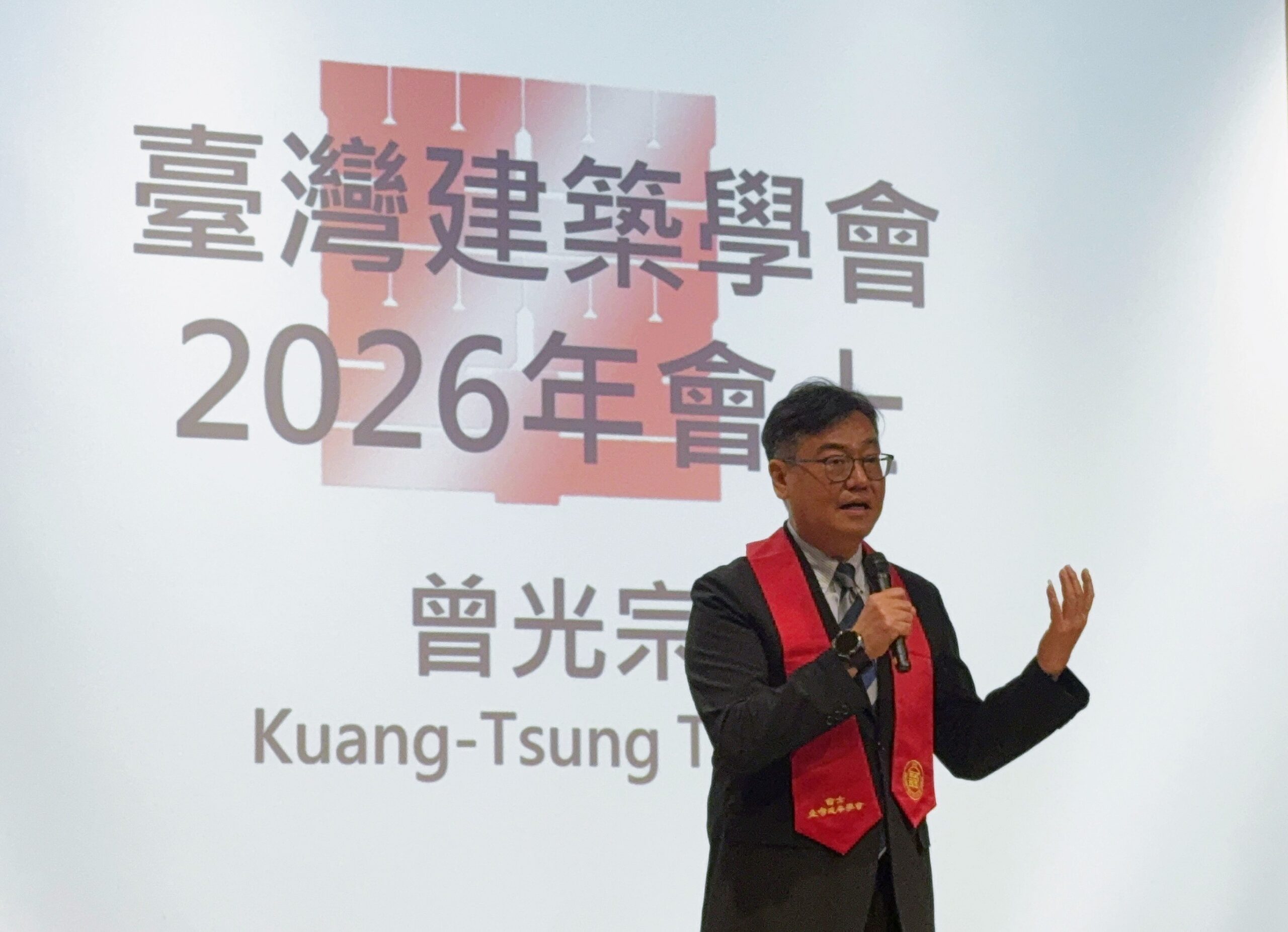 中原大學建築系教授曾光宗榮獲臺灣建築學會頒授「會士」榮銜,並於會中發表感言。
